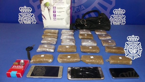 Y en el habitáculo debajo del volante, oculto mediante la tapa de acceso a los fusibles interiores del vehículo, se encontraban veinte paquetes al parecer de hachís, constatado posteriormente en las pruebas de drogo-test efectuadas en dependencias policiales, con un peso total de 1.950,8 gramos. Igualmente los agentes intervienen tres teléfonos móviles y el bolso de la mujer, el cual contenía restos de sustancia estupefaciente en su interior, siendo trasladado el vehículo a dependencias policiales.