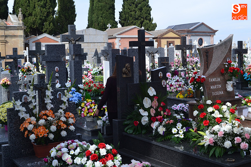 El cementerio de Peñaranda ha vuelto a convertirse en un hervidero durante este miércoles, festividad de Todos los Santos y día en el que familiares y seres queridos aprovecharon para visitar a sus fallecidos, entre un gran ambiente de recogimiento.