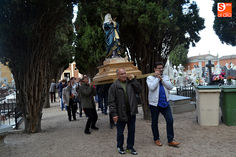 portando velas encendidas, a los que se sumaban diferentes representantes de las cofradías peñarandinas, y en el que además de un breve recorrido por el camposanto con la imagen de la Virgen portada a hombros, se realizaba un solemne rezo del rosario.