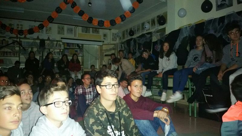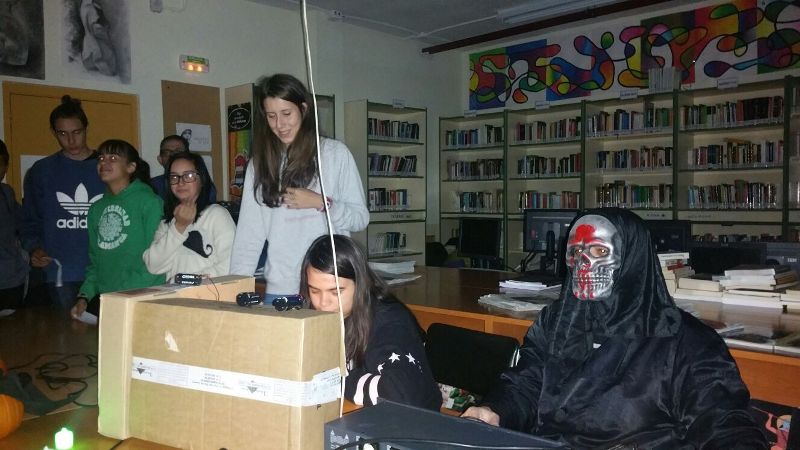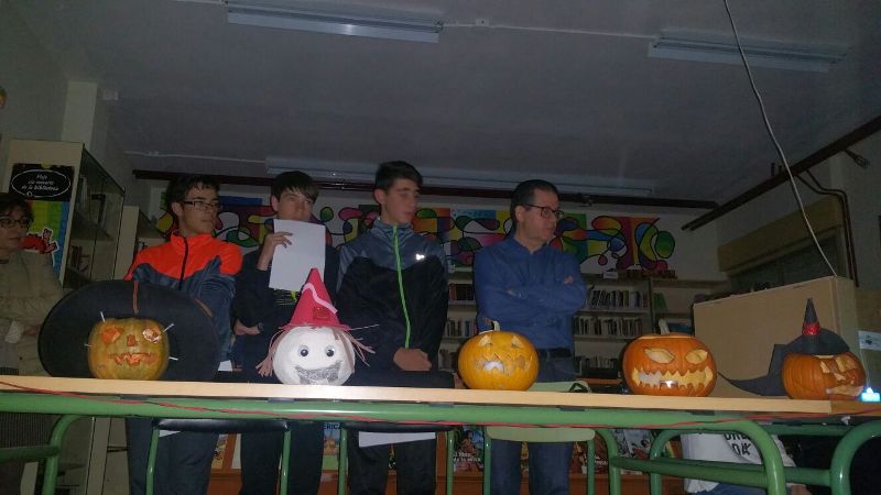 Con ocasión de la fiesta de Halloween el IES Leonardo d Vinci ha organizado dos sesiones de lecturas de relatos de terror en castellano y en inglés. La biblioteca ha sido decorada por los alumnos de ESO incluyendo efectos especiales de luces y sonidos para darle mayor suspenes y misterio, además han preparado durante los días previos una serie de relatos de terror con ayuda de los profesores del Departamento de Lengua y de Inglés.