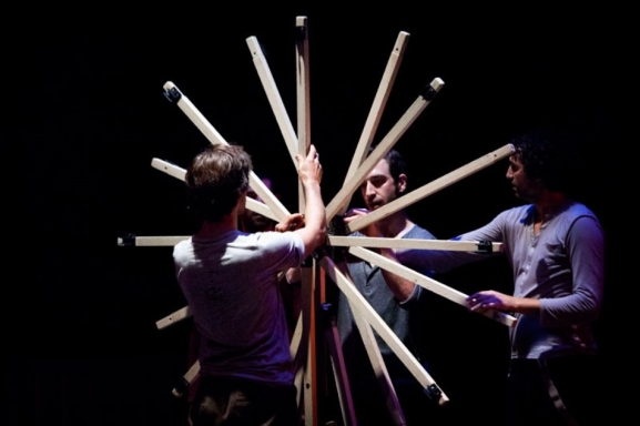 'Sinergia 3.0' es un espectáculo de circo contemporáneo que combina técnicas de malabares, manipulación de objetos, verticales y danza, coreografiadas con gran plasticidad geométrica y sensibilidad armónica.