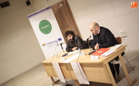 La nueva poesía portuguesa Alberto Santamaría y Martín López Vega ha protagonizado esta tarde en la Casa de las Conchas la sesión de los Encuentros Ibéricos. 'Poe-margen: Encuentro de Letras Hispano-Lusas' es un evento literario que nace para acercar las letras de España y Portugal y plantear reflexiones abiertas sobre los límites e intersecciones entre la palabra y las artes.