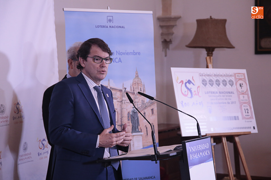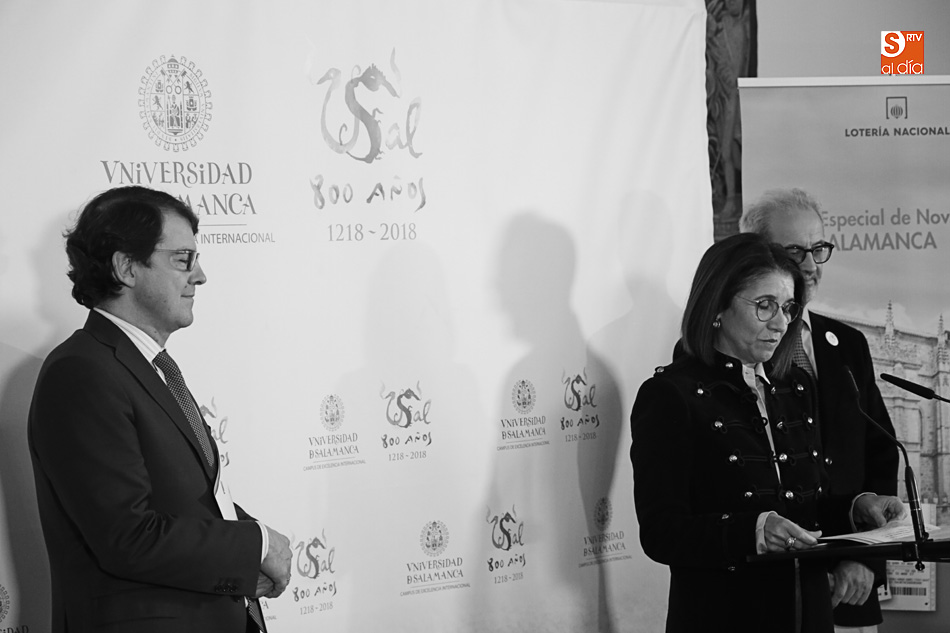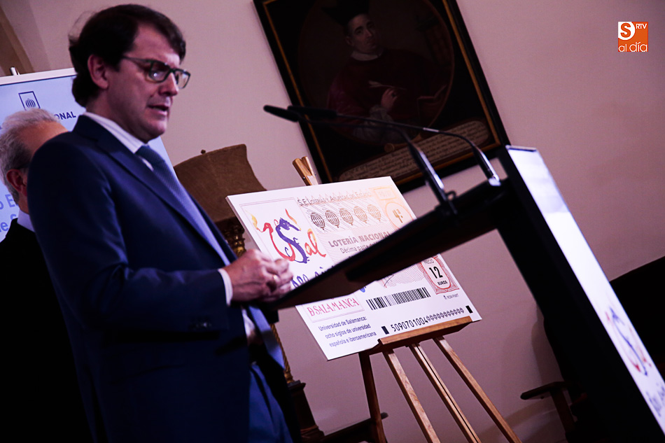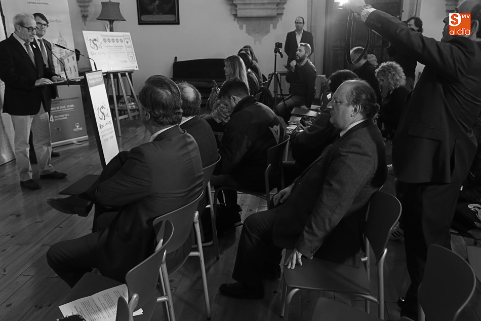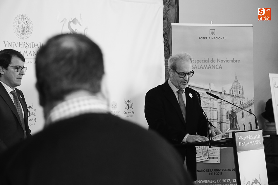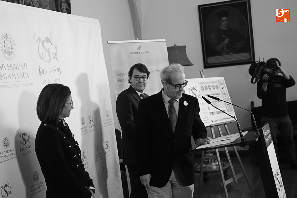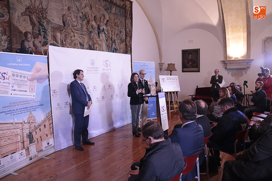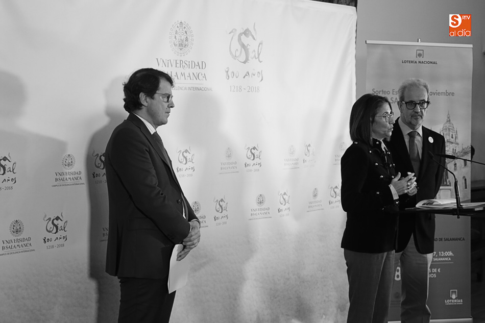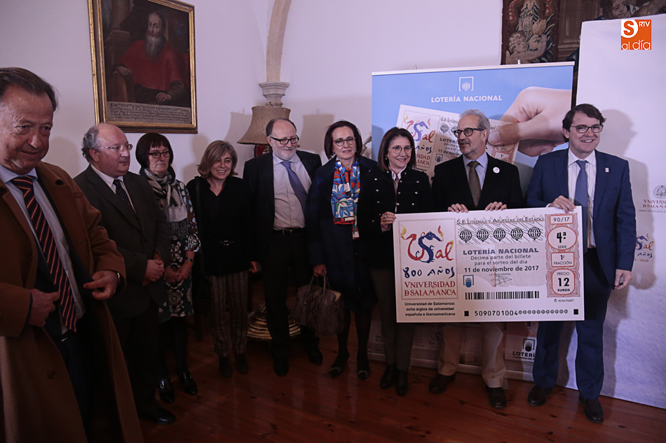El rector de la Universidad de Salamanca, Daniel Hernández, el alcalde de Salamanca, Alfonso Fernández Mañueco y la presidenta de Loterías y Apuestas del Estado, Inmaculada García, presentaron hoy ese sorteo. Retransmitido por Televisión Española, incluye la participación de varios niños del colegio Padre Manjón y una breve actuación musical del Coro de la Universidad de Salamanca en los instantes posteriores al sorteo.