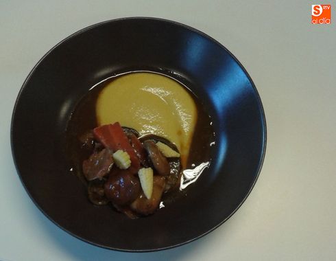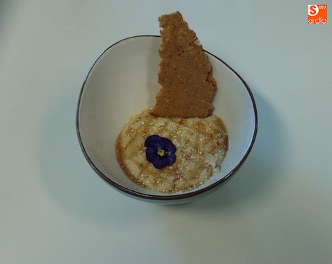La cocinera Leticia Martín ha realizado en directo una de las propuestas de su menú, 'Níscalo escabechado con crema de maíz', mientras Francisco Javier Fuster ha realizado el postre, 'Yogurt de boletus con aceite de trufa y crujiente de pistacho'.