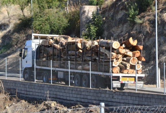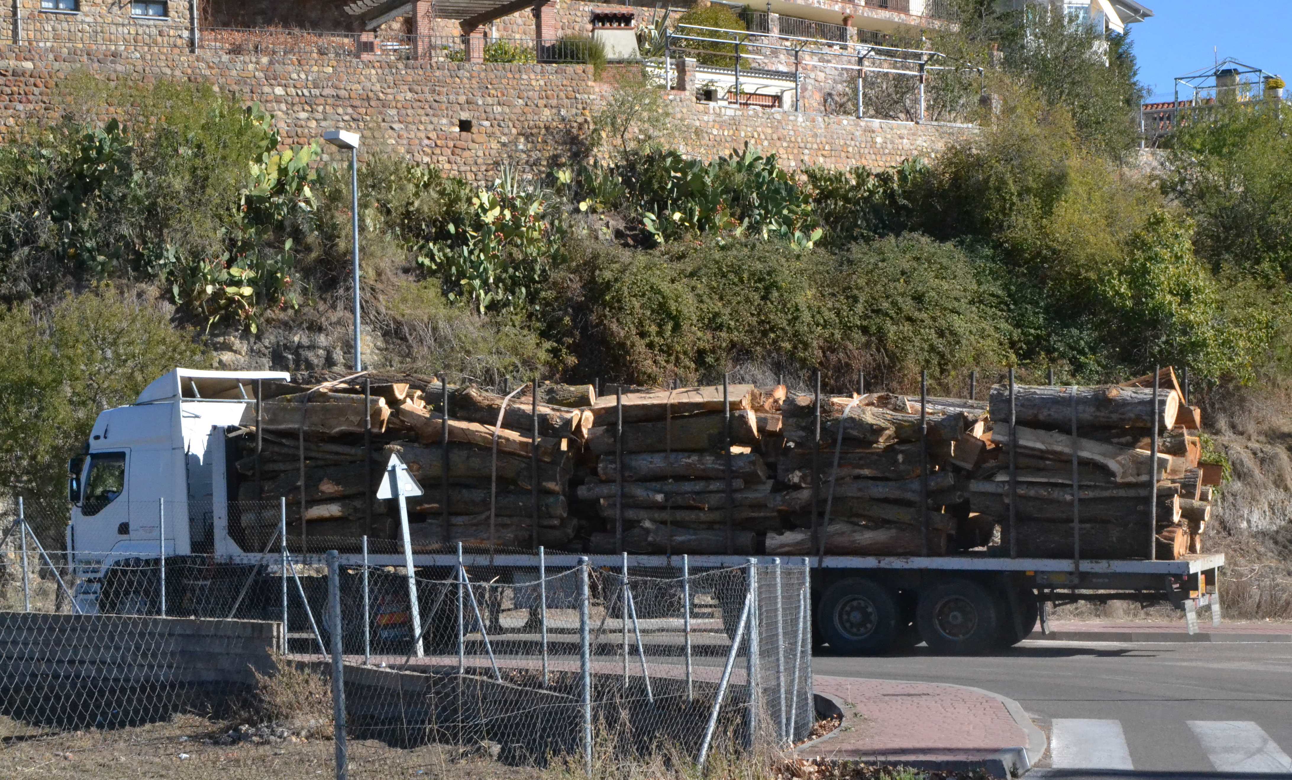 En el momento de marcharse, estaba empezando la operación de desmembración de los últimos árboles, que en principio iban a hacer su último viaje en otro camión que estaba ya a la espera de ser cargado de troncos.