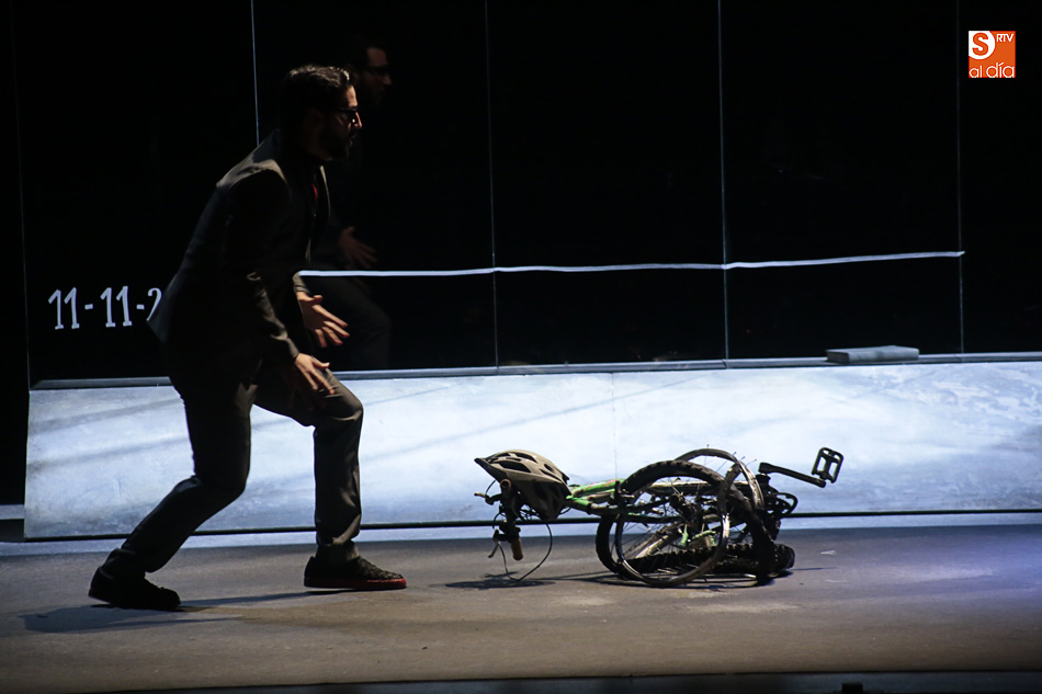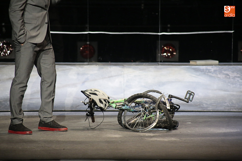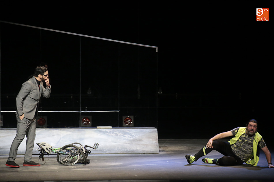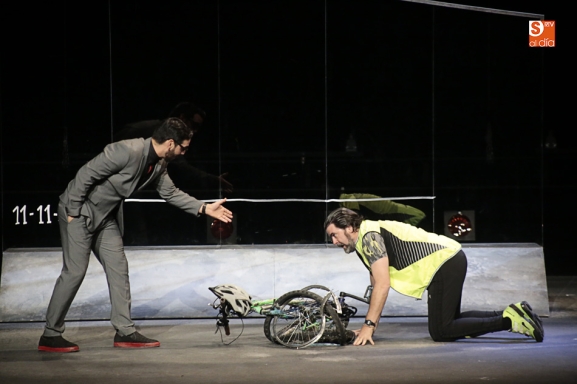 Fran Perea y Fernando Soto han protagonizado esta noche en el Teatro Liceo la representación de 'El ciclista utópico' y los actores no han defraudado con esta obra teatral en clave de comedia negra que sume al espectador en una profunda reflexión sobre la amistad y sus límites.