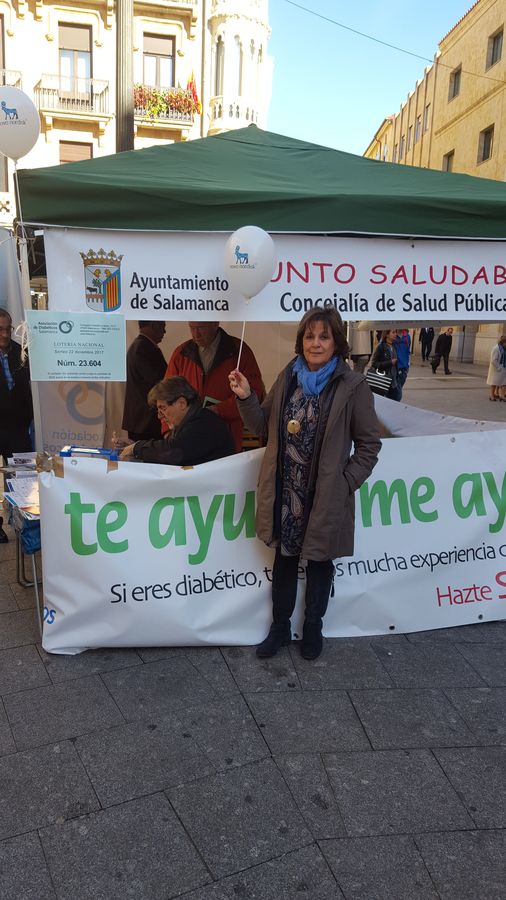 Con motivo de la conmemoración del Día Mundial de la Diabetes, que se celebra el próximo 14 de noviembre, la Asociación Diabetológica Salmantina está realizando controles de glucemia en la carpa instalada en la Plaza del Liceo, que permanecerá instalada hasta media tarde y a la que ha acudido la presidenta del colectivo, Belén Bernalt, para informar a la población de la labor que desarrollan.
