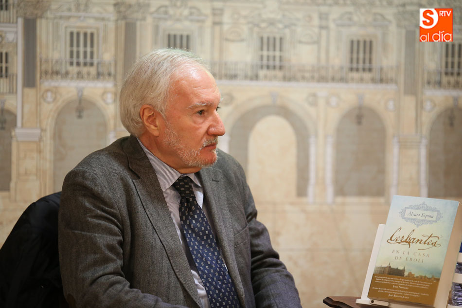 Álvaro Espina presentaba esta tarde una sorprendente novela histórica, 'Cerbantes en la casa de Éboli' en la librería Santos Ochoa, una novela que intenta llevarnos al Madrid de Felipe II a través de lo que pudo ser la vida de Miguel de Cervantes y también a las intrigas de la corte. Espina, doctor en Ciencias Políticas, fue Secretario General de Empleo y Secretario de Estado de Industria y ha publicado numerosas obras entre ensayos, libros y artículos.