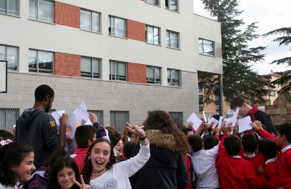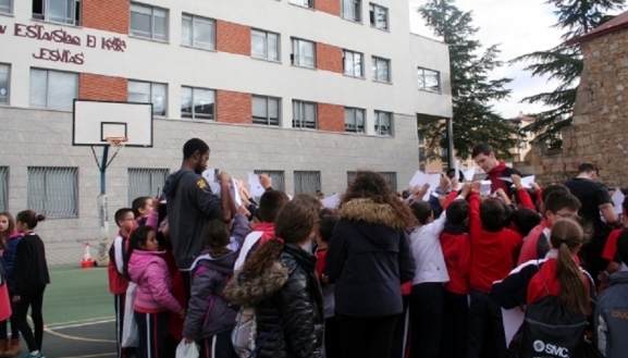A continuación los alumnos preguntaron en inglés sus inquietudes y curiosidades a los jugadores, y fueron obsequiados con entradas y bragas polares firmadas por los miembros del equipo.Como despedida en el patio jugaron con los escolares y les enseñaron las principales tácticas que se emplean en los partidos.