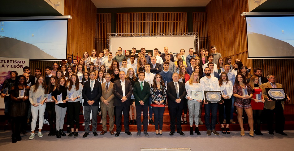 Un año más, el atletismo de Castilla y León está de enhorabuena. Tras una espléndida campaña en la que se ha vuelto a batir el récord de medallas en Campeonatos de España (de cadete a sénior), con un total de 154 podios para los atletas de la comunidad (nueve más que el anterior), hoy en la XXVII Gala Regional celebrada en el salón de Actos de la Universidad Europea Miguel de Cervantes de Valladolid, todos ellos -menos algún ausente- recogieron los galardones como los más destacados del año en curso. Así hasta más de 100 atletas, entrenadores, clubes, jueces y organismos públicos y entidades privadas recibieron su premio como reconocimiento a los méritos contraídos en la temporada 2016/2017, una gala que tuvo al atletismo salmantinos como protagonista