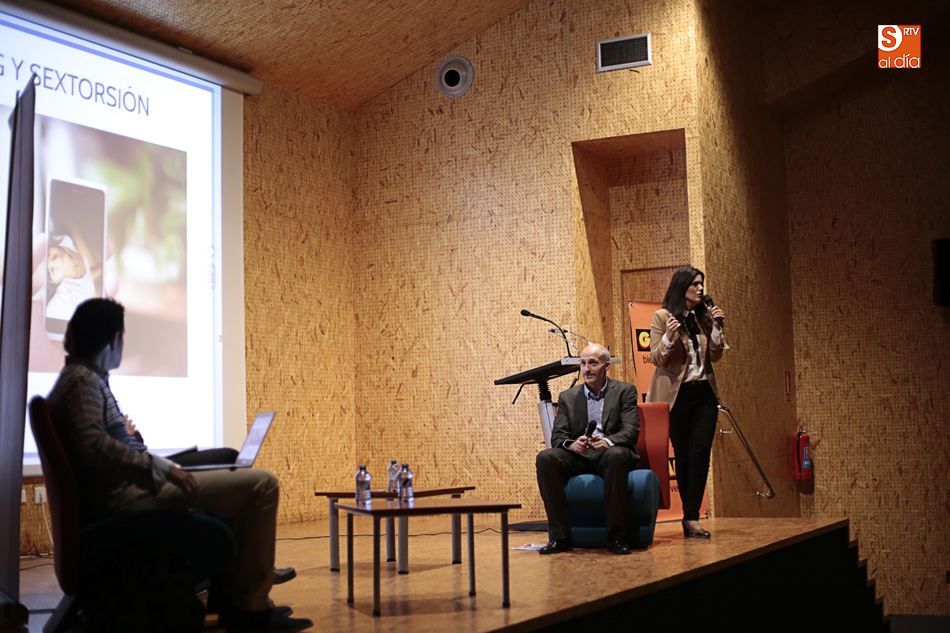 El salón de actos del centro municipal integrado Julián Sánchez "El Charro" acogió este lunes la jornada 'En Internet #QueNoTeLíen; Internet Seguro para padres e hijos', organizada por la Fundación Torre del Clavero para padres e hijos de 10 a 12 años. El objetivo de esta actividad es concienciar sobre el uso de internet. Comenzó con tres ponencias de 15 minutos cada una, que dieron paso a un debate participativo.