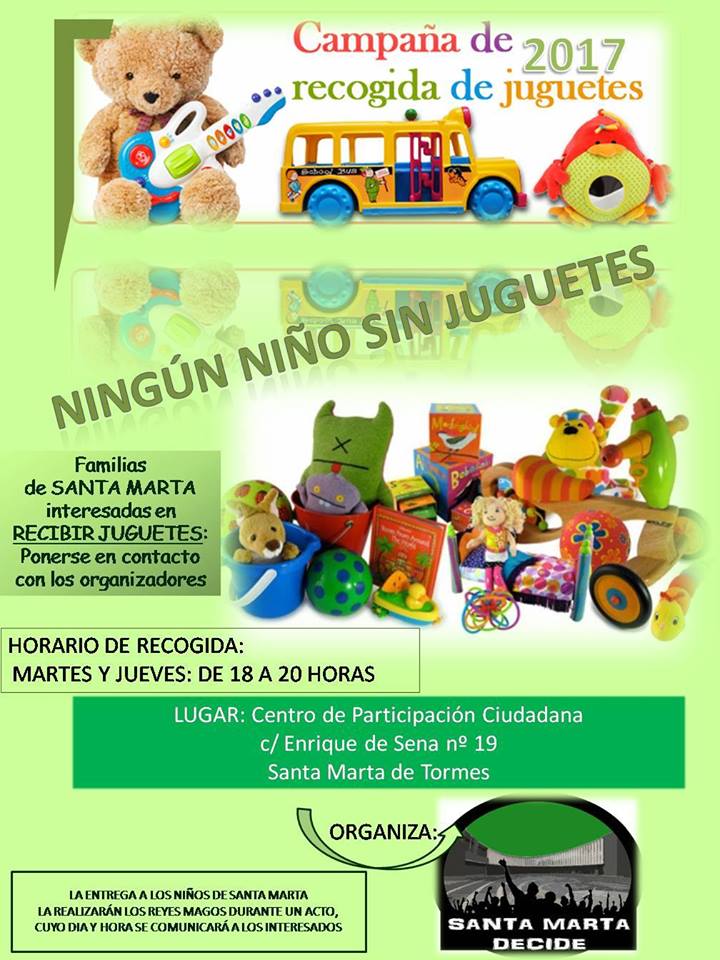 Santa Marta Decide ha iniciado una campaña de recogida de juguetes que serán entregados en Navidad a las familias necesitadas de la localidad. Desde la organización explican que "estos juguetes serán entregados, prioritariamente, a familias que tengan necesidades especiales de nuestro municipio y que previamente hayan contactado con nuestra asociación solicitando los juguetes".