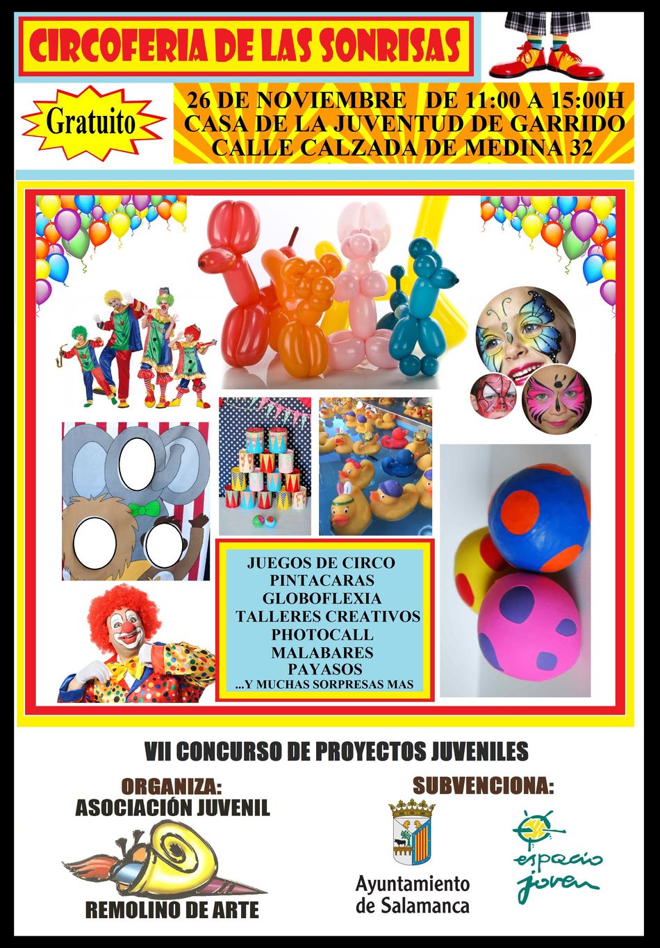 La Asociación Juvenil Remolino de Arte, de Salamanca, organiza este domingo día 26 de noviembre, en la Casa de la Juventud de Garrido (calle Calzada de Medina), el programa 'Circoferia de las Sonrisas'