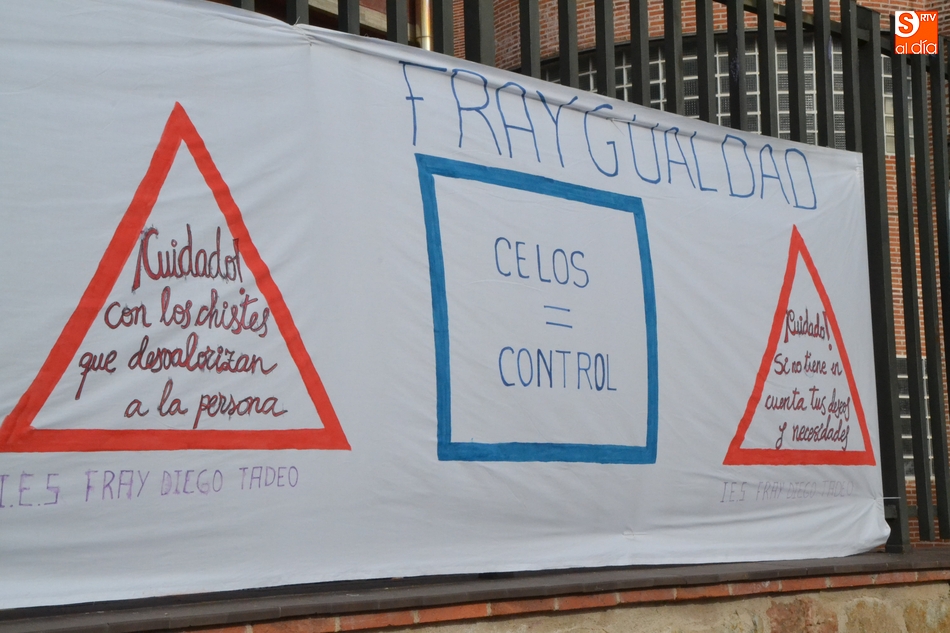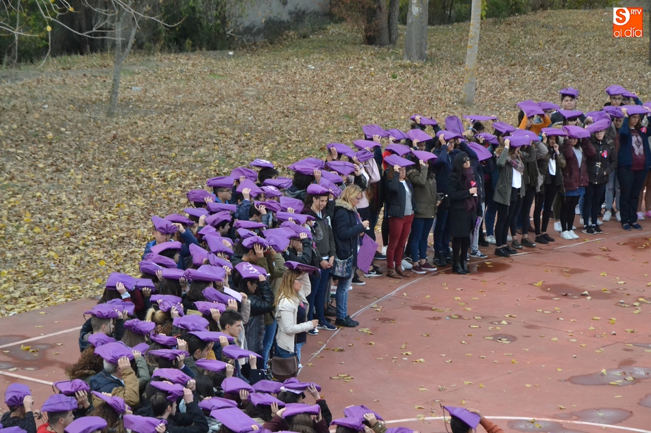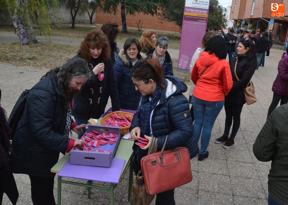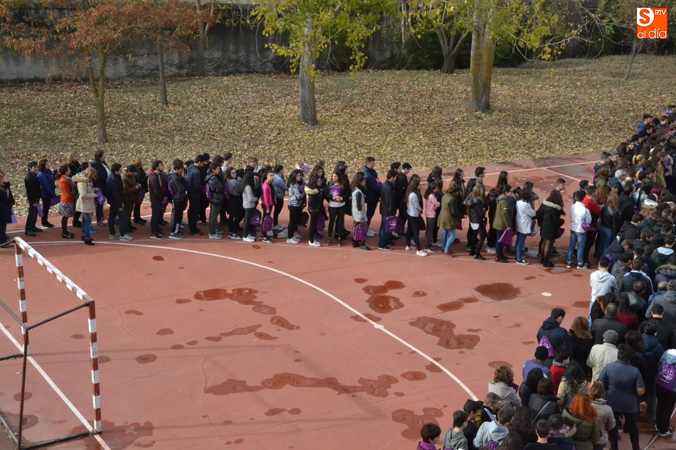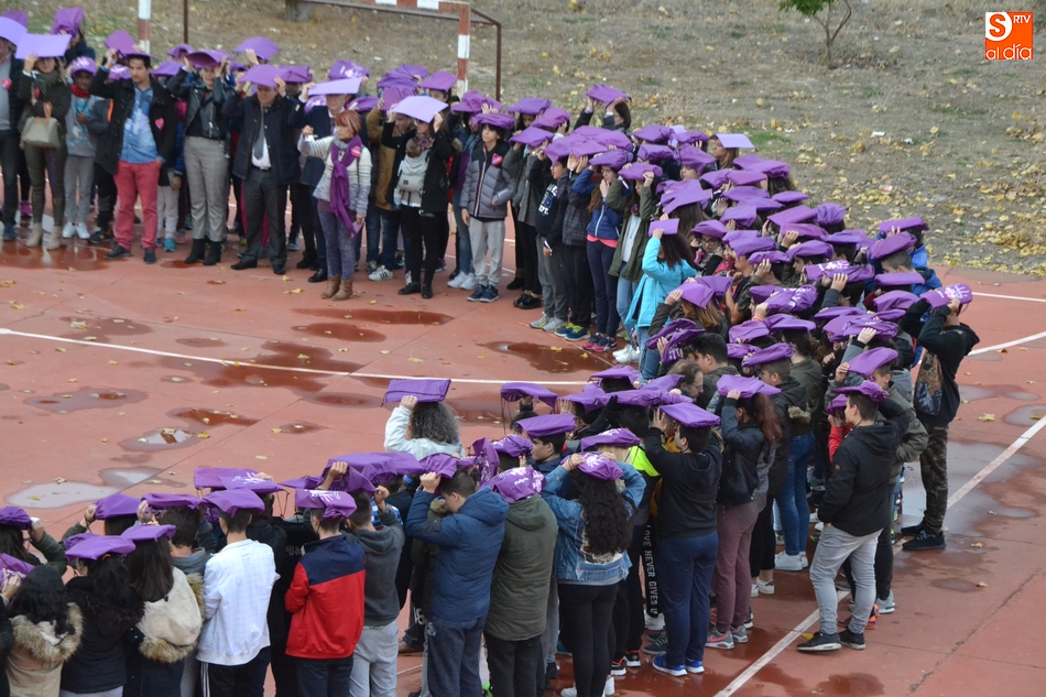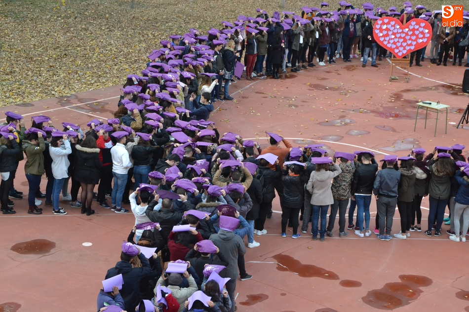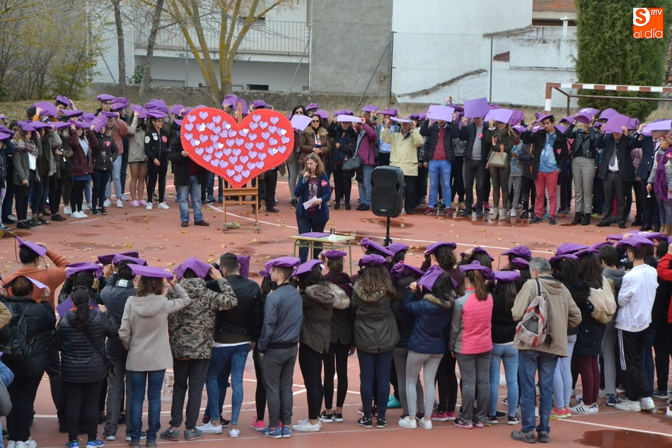 El IES Fray Diego Tadeo de Ciudad Rodrigo llevó a cabo en la mañana del jueves su tradicional acto de conmemoración del Día Internacional para la Eliminación de la Violencia hacia las Mujeres, con la participación de miembros de todos los sectores de la comunidad educativa del IES, así como de representantes políticos del Ayuntamiento mirobrigense y de la Policía Local.