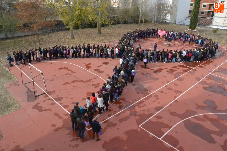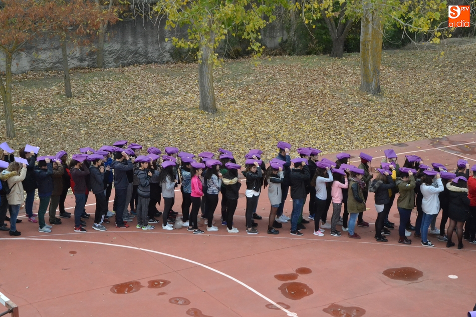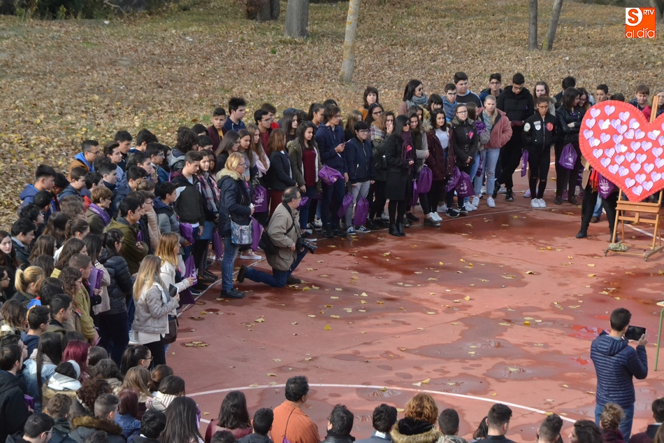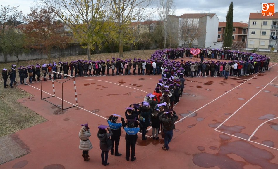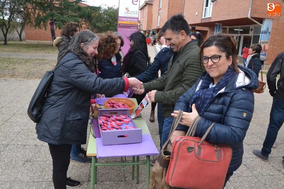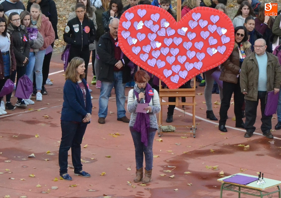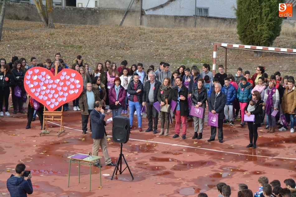 El IES Fray Diego Tadeo de Ciudad Rodrigo llevó a cabo en la mañana del jueves su tradicional acto de conmemoración del Día Internacional para la Eliminación de la Violencia hacia las Mujeres, con la participación de miembros de todos los sectores de la comunidad educativa del IES, así como de representantes políticos del Ayuntamiento mirobrigense y de la Policía Local.