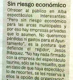 Precisamente, el Partido Popular, acusa a Jesús Blázquez de mentir en su contestación a las criticas populares en una publicación de La Gaceta de Salamanca correspondiente al 9 de noviembre. En esas líneas, Jesús Blázquez se muestra tajante y afirma que "no hay nada firmado con la empresa del espectáculo taurino, sólo se ha resuelto, que en caso de que haya espectáculo de recortes, se les reserva a ellos la opción de realizarlo".