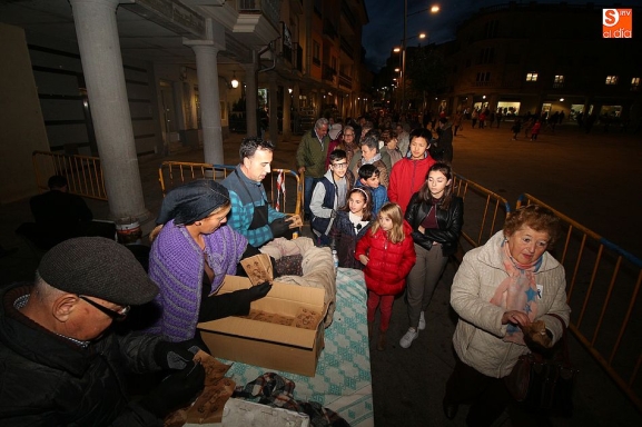 dicional, los integrantes de Asadina invitaron a los presentes, que llegaron a varios cientos de personas, a participar en un divertido juego cantando canciones populares con la letra adaptada a las castañas. La concejala de Cultura, María Jesús Moro, estuvo presente en la castañada y colaboró en el reparto de castañas asadas que comenzó poco después de las siete de la tarde. Una tradicional cita que gana adeptos cada año y que preserva la cultura local a través de las tradiciones.