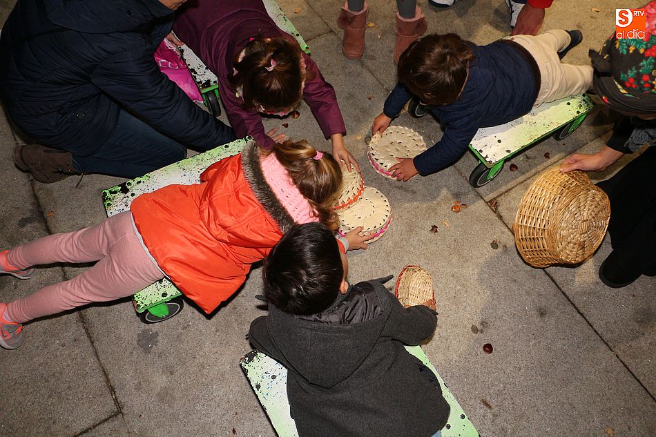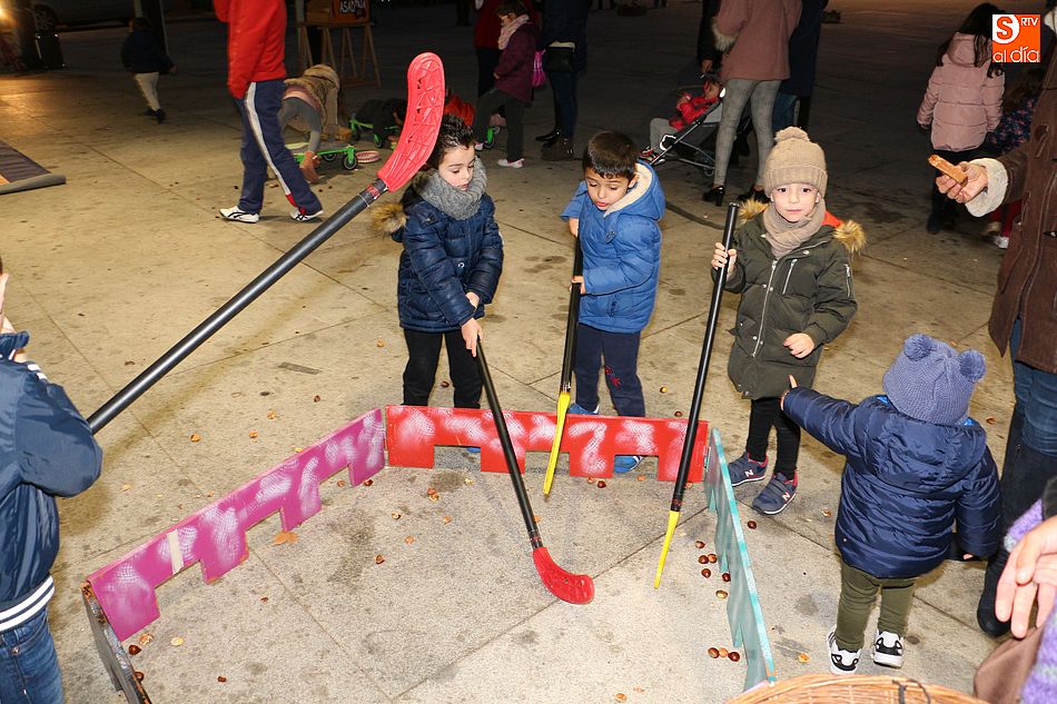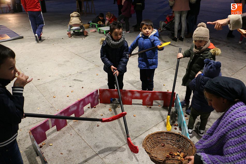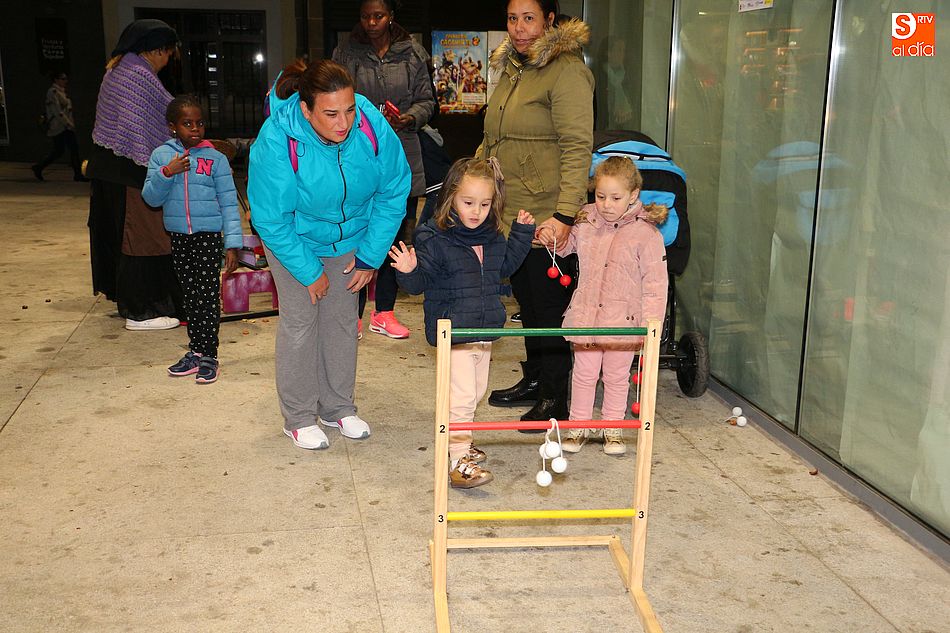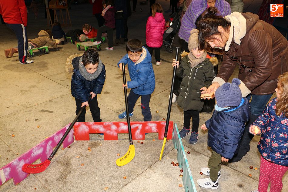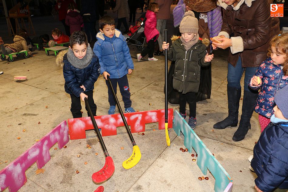 Guijuelo cumplió esta tarde con la tradición otoñal de la castañada con una propuesta que incluyó juegos y música. El grupo Asadina, se encargó de ofrecer juegos, principalmente para el público infantil en el que las castañas fueron protagonistas. Desde tiro al blanco con tiracastañas, rompecabezas, hasta hockey de castañas se ofrecieron a las decenas de niños que se acercaron hasta la plaza Mayor, donde se instalaron todas las actividades. Además de música tra