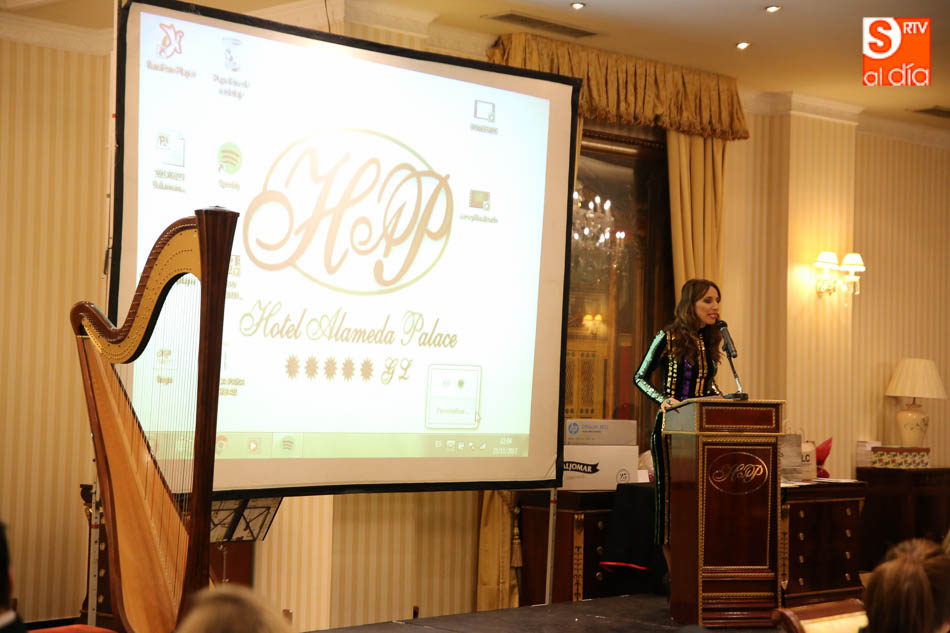 La Asociación de Enfermedades Raras de Castilla y León (Aerscyl) ha reunido esta noche a más de 150 invitados en la cena solidaria de Navidad celebrada en el hotel Alameda Palace. La velada ha comenzado a las 21.30 horas con el recibimiento en vestíbulo de hotel a los asistentes, donde se han realizado sesiones de fotos, para dar paso después a Marta Ayuso y María que ofrecido diversas piezas musicales tocadas con arpa y flauta.