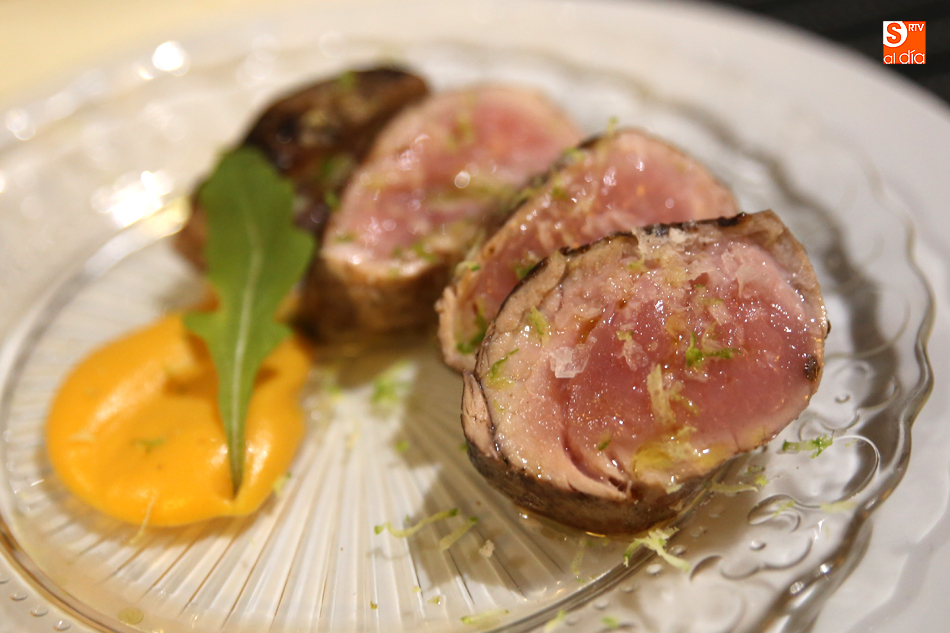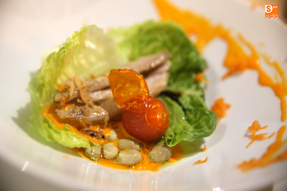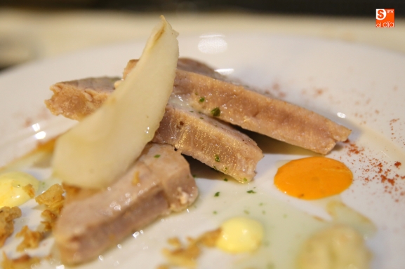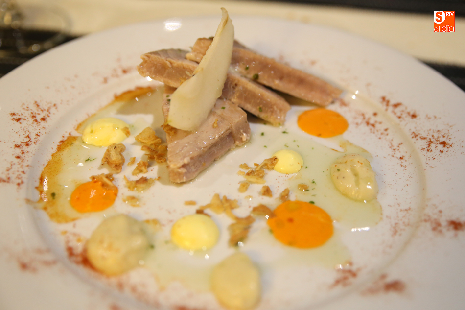 El segundo gira alrededor de un cogollo de lechuga relleno de ventresca, tomate confitado y vinagreta de piquillo. Por último, una jugosa tosta de jamón con foie, cebolla dulce y pasas.