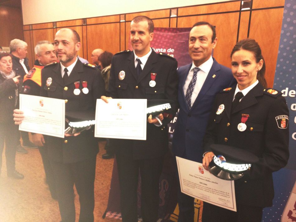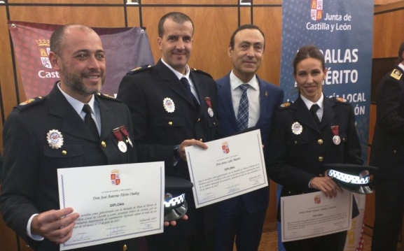 Tres policías locales de Carbajosa de la Sagrada, Diana Ceballos, Jesús Lobo y José Antonio Florín, han recibido esta mañana en Ponferrada (León) las Medallas al Mérito de la Policía Local y de la Protección Ciudadana de Castilla y León por hechos extraordinarios. En el caso de Diana Ceballos y Jesús Lobo ha sido por salvar la vida a una joven; y en el caso de José Antonio Florín, por salvar también la vida a un niño en un suceso de atragantamiento.