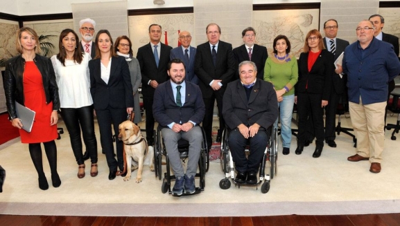 Representantes de las federaciones de CERMI CyL se han reunido con el presidente de la Junta de Castilla y León, Juan Vicente Herrera, y la consejera de Familia e Igualdad de Oportunidades, Alicia García, para hacer un seguimiento de las principales actuaciones desarrolladas en la Comunidad gracias a la colaboración entre la Junta y CERMI.