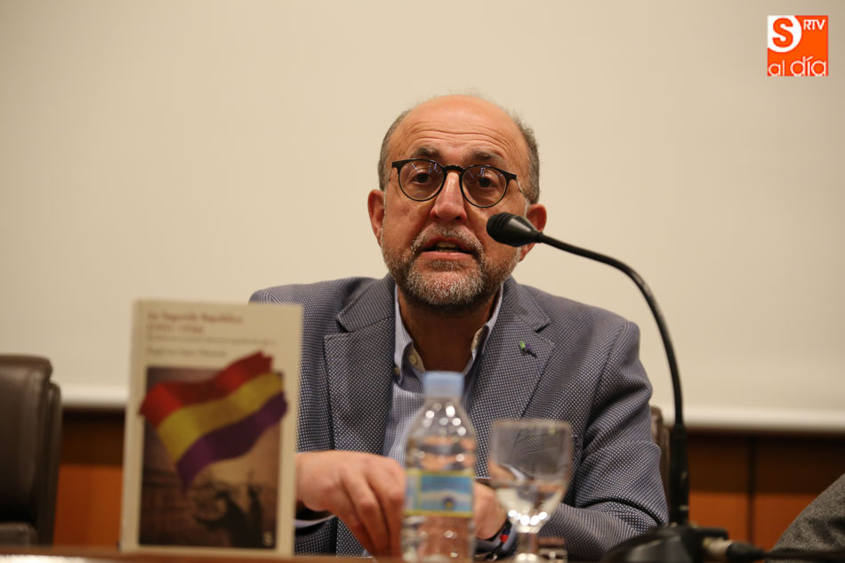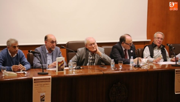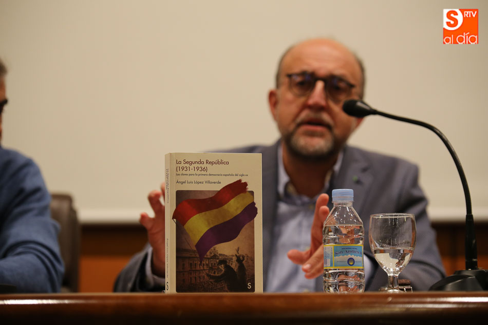 El Salón de actos de la Facultad de Geografía e Historia acogió el aula de debate "La España actual", que reanudó sus sesiones con la presentación del libro 'La Segunda República (1931-1936): Las claves de la primera democracia española del siglo XX', de Ángel Luis López Villaverde, profesor de la Universidad de Castilla-La Mancha.