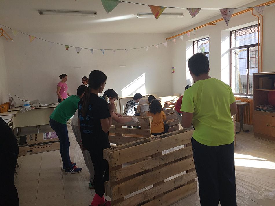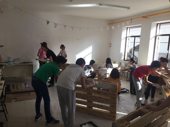 La propuesta tuvo éxito y se contó con una gran respuesta por parte de los jóvenes de la localidad que pronto se pusieron en marcha. A inicios del mes de noviembre se realizó un taller de mobiliario reciclado, en el que aprendieron a crear elementos útiles con palés y otros materiales usados.