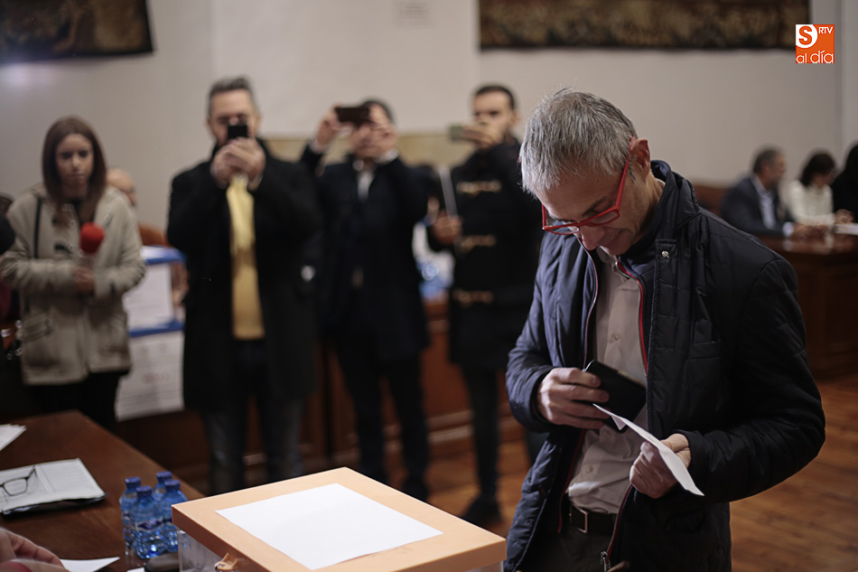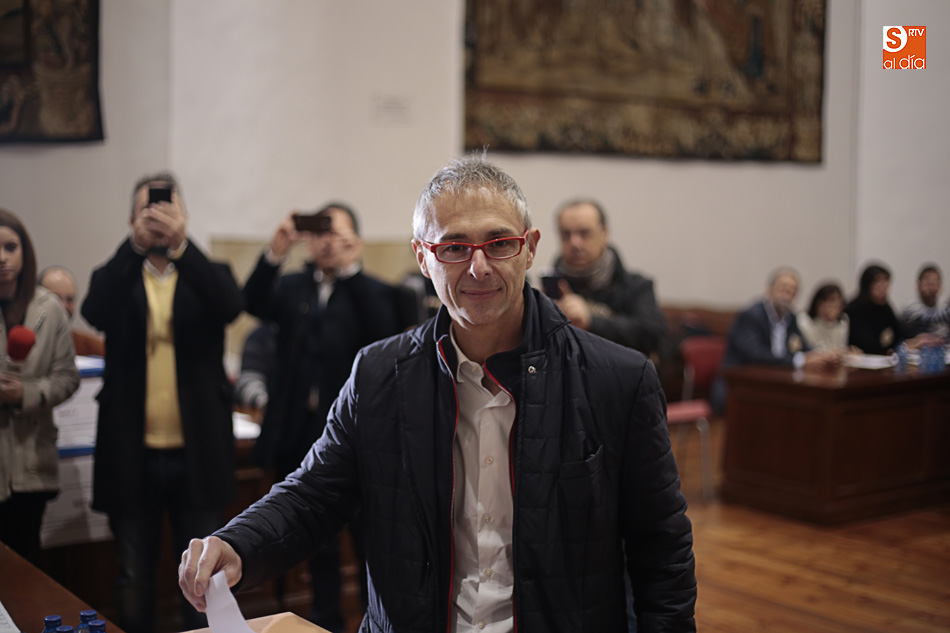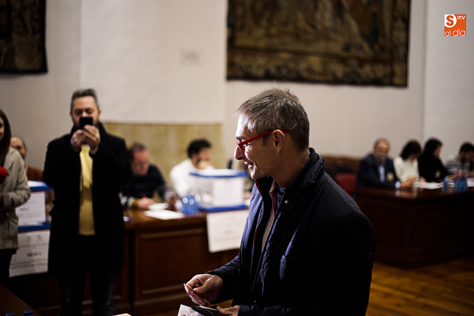 "Una celebración de la democracia en la Universidad, así que espero que la participación sea tan buena como en la primera vuelta", señaló el catedrático de Derecho Administrativo y candidato a rector de la Universidad de Salamanca Ricardo Rivero Ortega, que acudió a votar con su equipo de Gobierno momentos después de abrirse las urnas en el Aula Francisco Salinas.