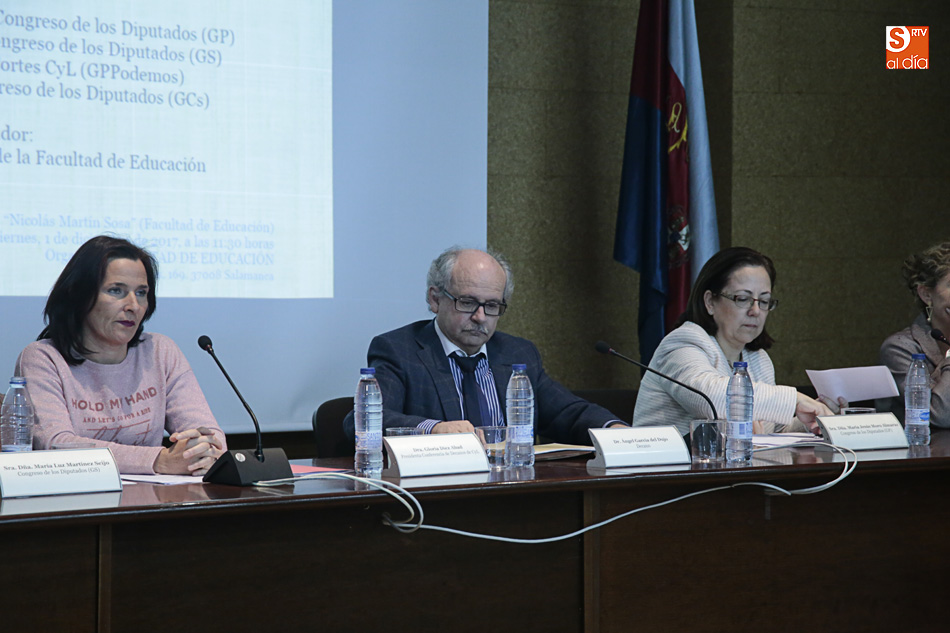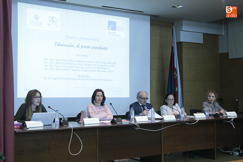 Los ponentes eran María Jesus Moro, diputada del PP en el Congreso; María Luz Martínez Seijo, del Grupo Socialista; Javier Sánchez Serna, diputado de GCUP-EC-EM, y Marta Martín Llaguno, del Grupo Ciudadanos. La presentación y la moderación corrió a cargo de Ángel García del Dujo, decano de la Facultad de Educación.