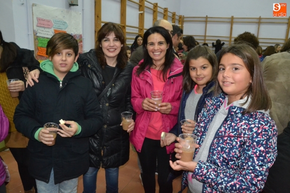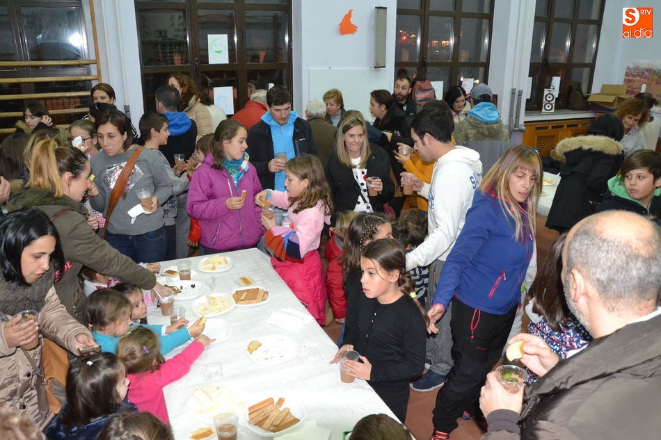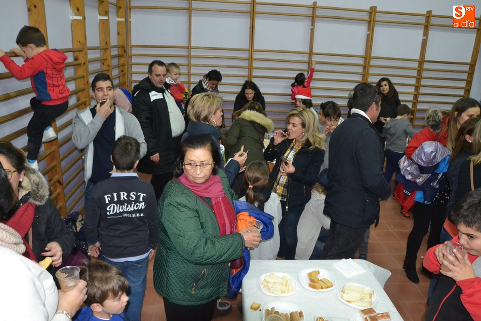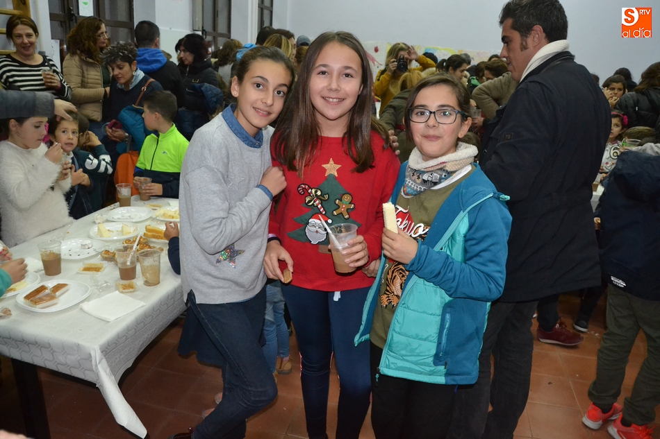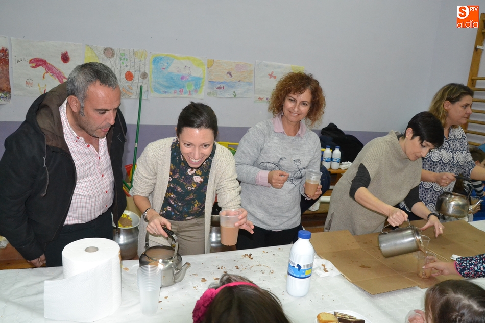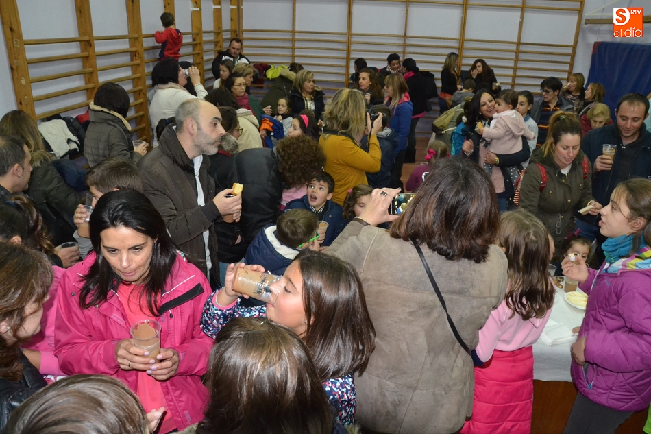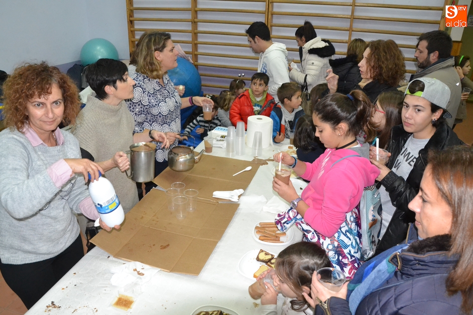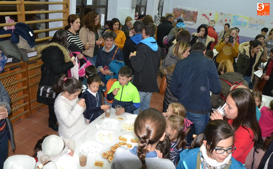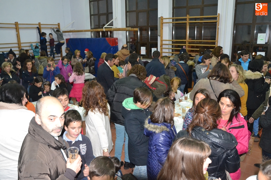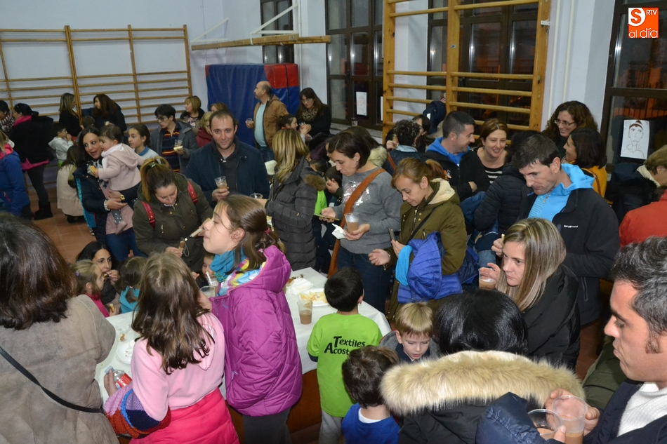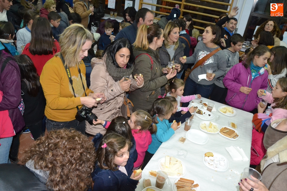 A continuación, todos esos niños junto a sus progenitores entraron en el gimnasio del Colegio, para disfrutar de un rico chocolate caliente (con bizcochos, palmeritas, sobaos y otros dulces) preparado por los integrantes de la AMPA.