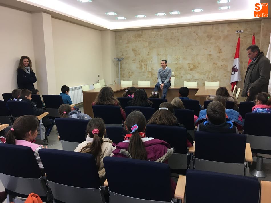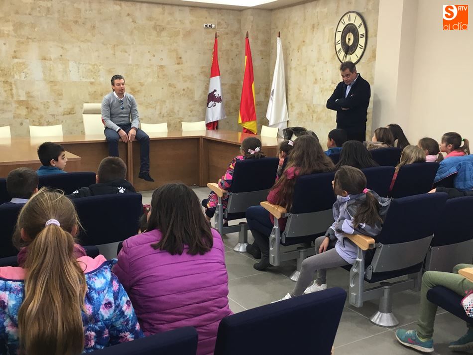 "¿Te gusta ser alcalde?" "¿Por qué a veces se va el agua?" "¿Quién pone la hora en el reloj del Ayuntamiento?" Los alumnos del CEIP Filiberto Villalobos de Babilafuente visitaron en la mañana de este lunes el Ayuntamiento de Babilafuente para conocer su funcionamiento. El alcalde de la localidad, Manuel Palomero, fue el encargado de explicar el papel del Consistorio y responder a las decenas de preguntas planteadas por los niños.