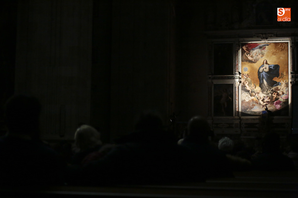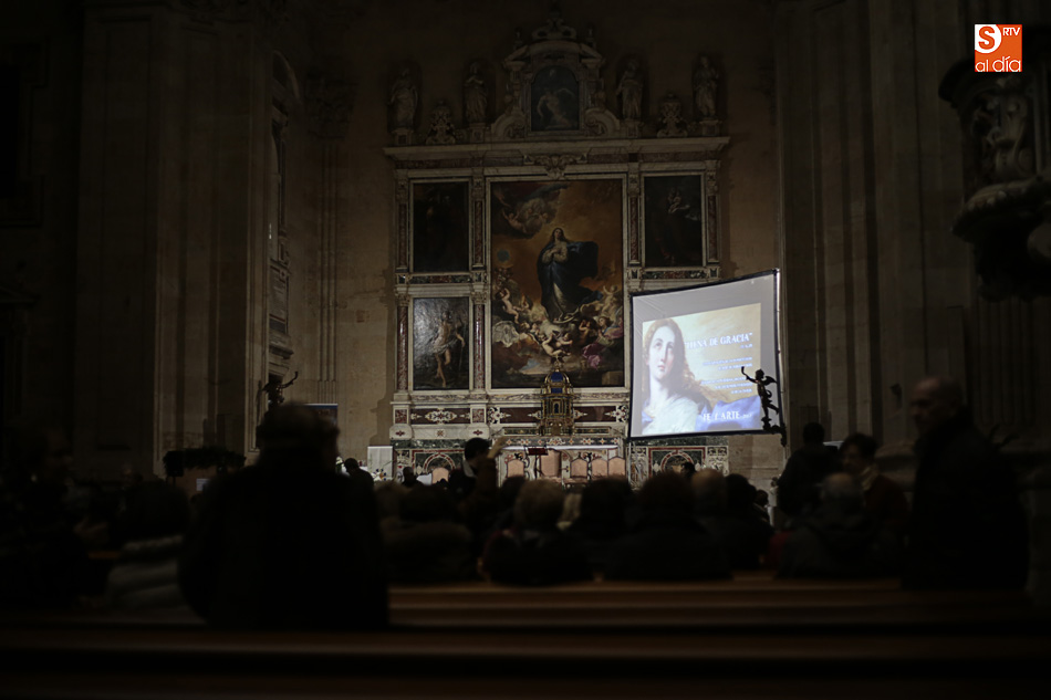 La Iglesia de la Purísima acogió este viernes festivo los actos de solemnidad de la Inmaculada Concepción de María, unos actos que comienzan con los encuentros de Fe y Arte para este curso 2017-2018. En esta ocasión contemplarán el gran lienzo de la Inmaculada que realizó José de Ribera en 1635.