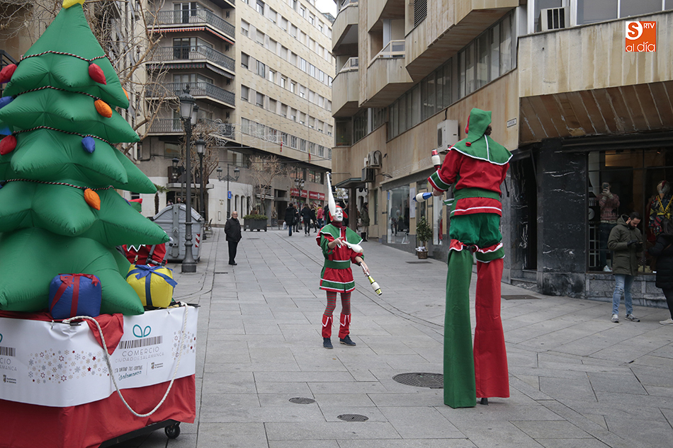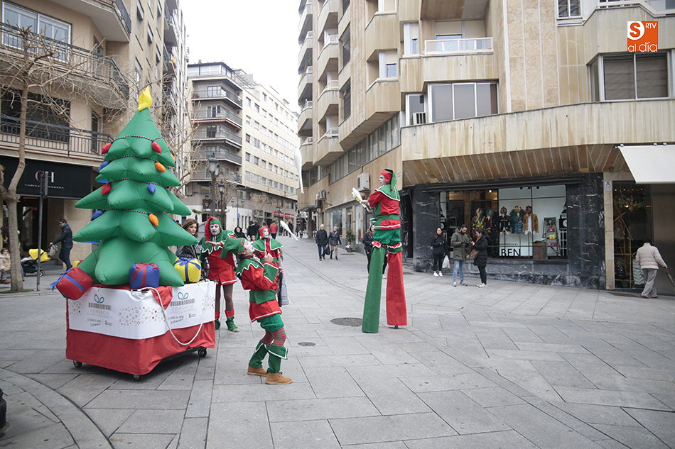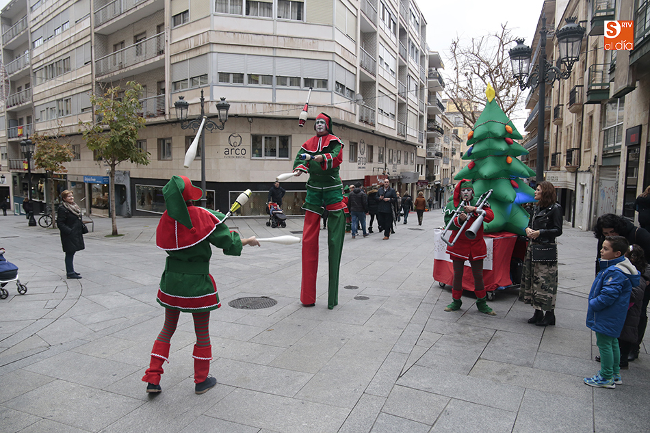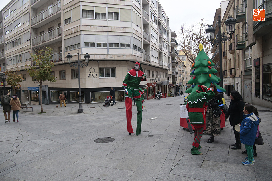 Cerca de cuarenta pasacalles de animación itinerante recorrerán las zonas comerciales de la ciudad durante las fiestas navideñas. Durante este fin de semana los encargados de dar color a las calles son Los Duendes de Navidad que recorrerán el centro las mañanas y tardes de este fin de semana con divertidas actuaciones. La actividad, formada por tres animadores que se desplazan en una vistosa plataforma, ha comenado hoy en la zona de la calle Arco y la calle Toro. Por la tarde estará a las 18.00 horas junto a la Plaza de Anaya y centro histórico y a las 19.00 horas, en el centro.
