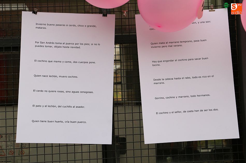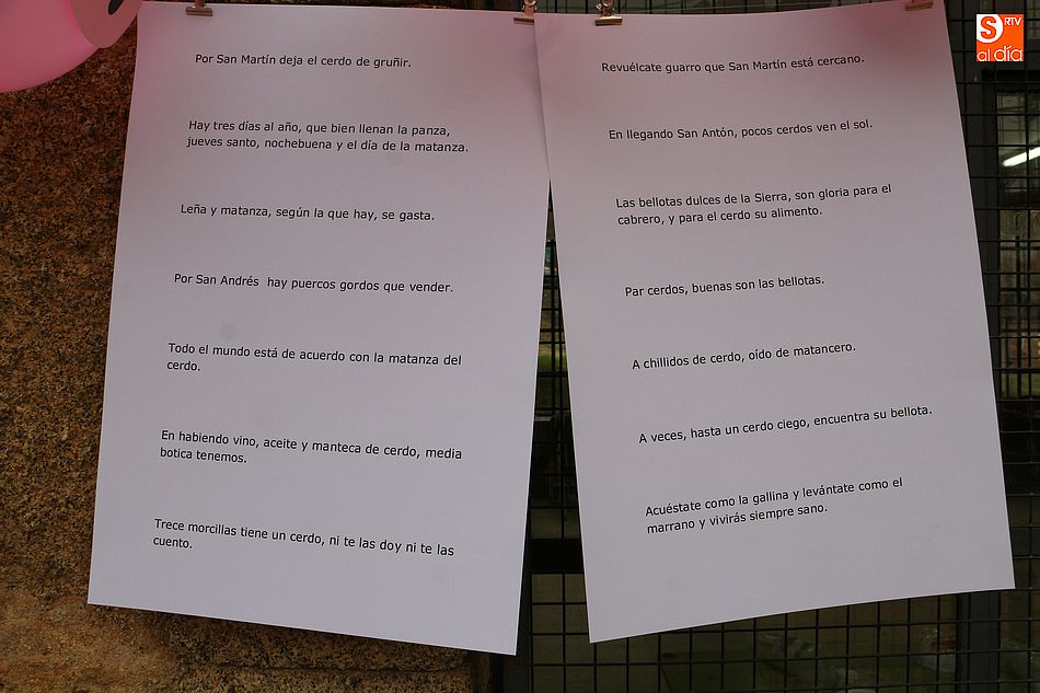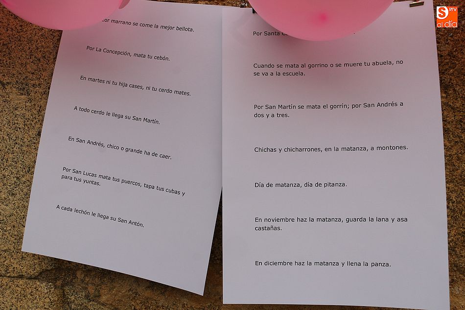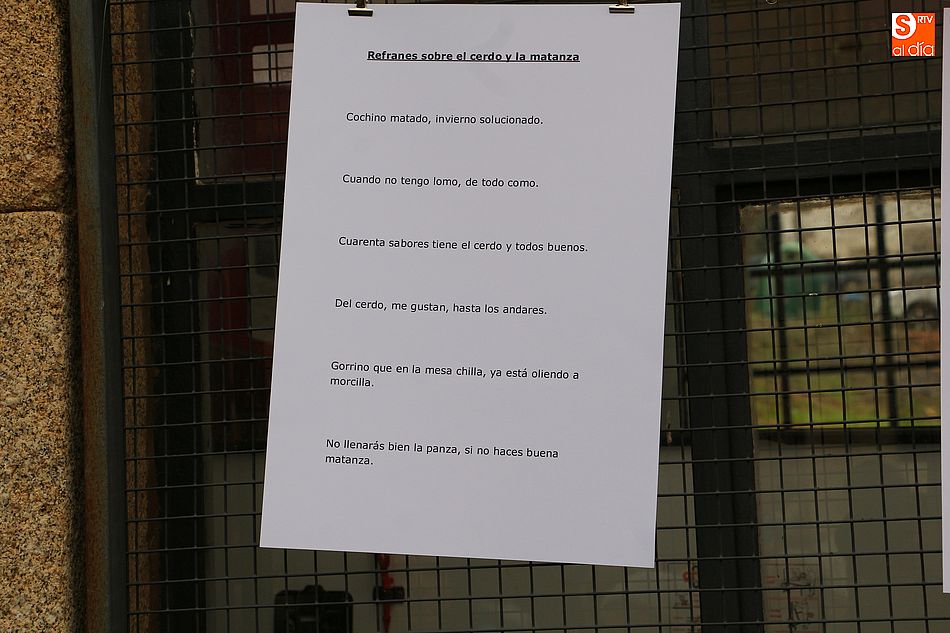 Santibañez de la Sierra ha celebrado hoy una nueva edición de su matanza típica en la que no han faltado sabrosos productos típicos, homenajes y hospitalidad. En la localidad están orgullosos de esta tradicional fiesta y este año han dado un paso más en su defensa recopilando cuantos refranes y dichos populares han encontrado sobre el cerdo y su sacrificio chacinero, que durante siglos supuso una manera de proporcionar sustento a las familias. La propia lengua evidencia el carácter festivo de esta práctica que suponía abundancia cuando era posible ejercerla. La organización de la matanza ha colocado la recopilación a la vista de todos los asistentes a la matanza, para que disfrutaran con el aspecto cultural e histórico de una fiesta que hoy en día está de nuevo en auge como elemento turístico en la provincia de Salamanca. La Diputación de Salamanca ha elaborado un calendario de citas matanceras en toda la provincia a lo largo del presente invierno en las que se podrá vivir en persona esta antigua práctica gastronómica.