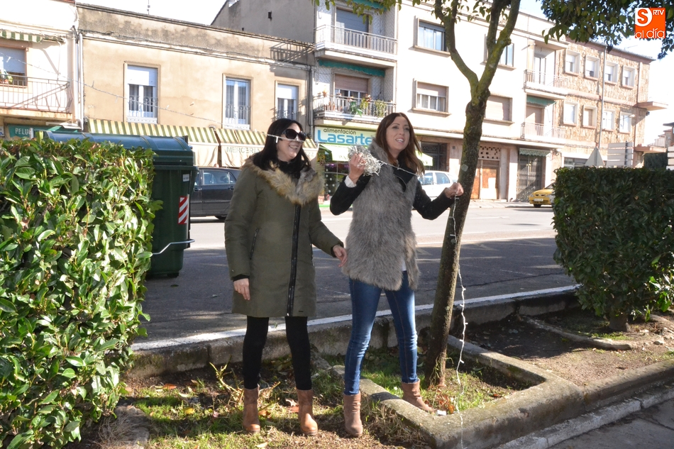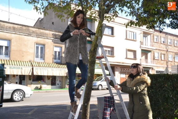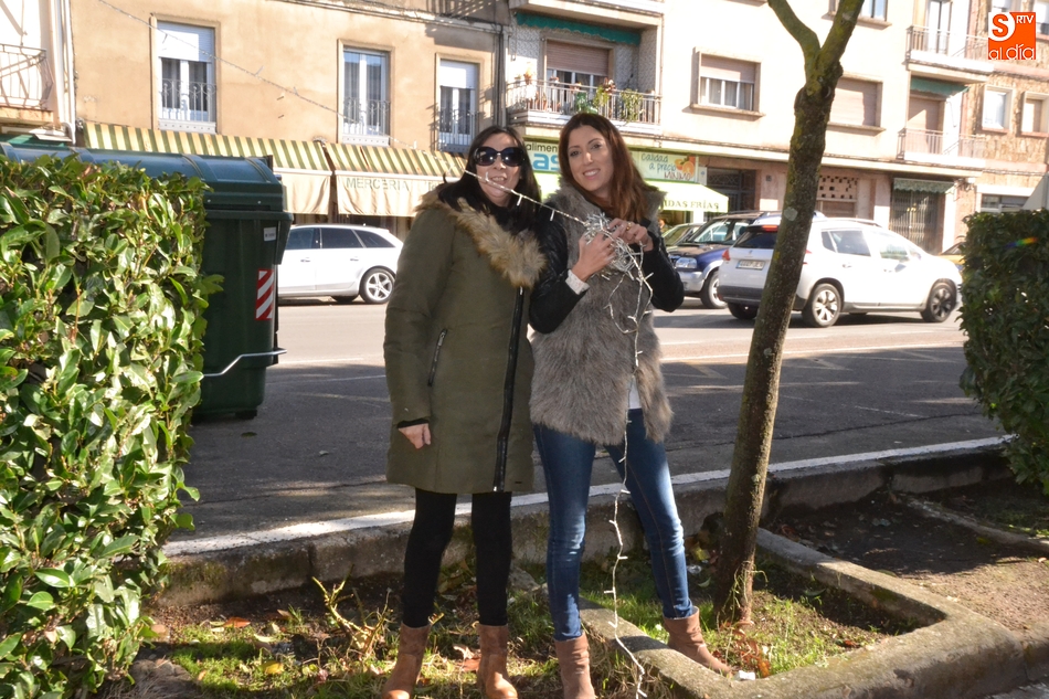 En la mañana del martes, dos de las comerciantes de la Avenida estuvieron ultimando la decoración, con la colocación de luces navideñas en los árboles situados entre la rotonda del Cruce y la calle Campo de Toledo.