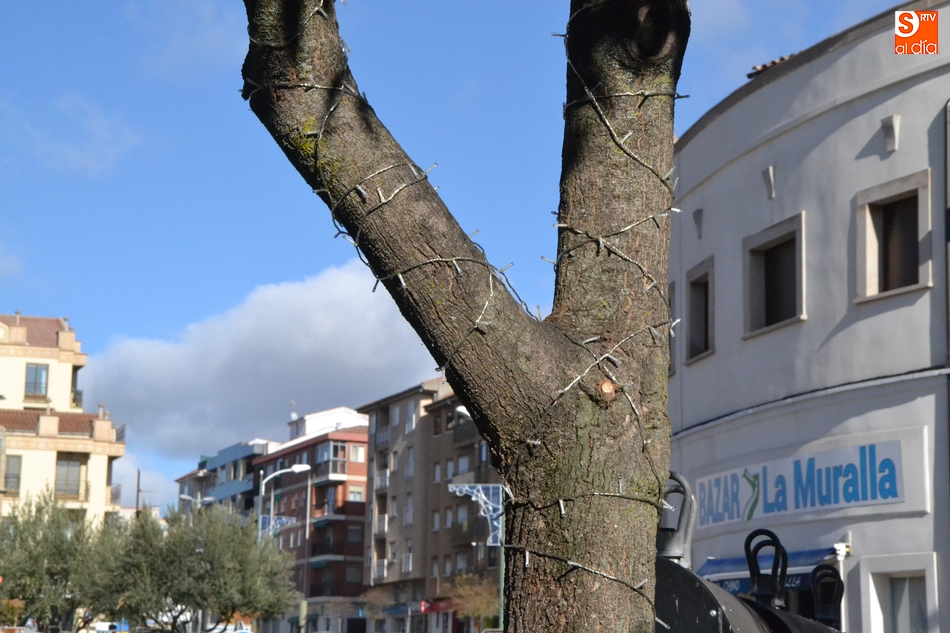 CIUDAD RODRIGO | Se han colocado luces en los árboles situados entre la rotonda del Cruce y la calle Campo de Toledo