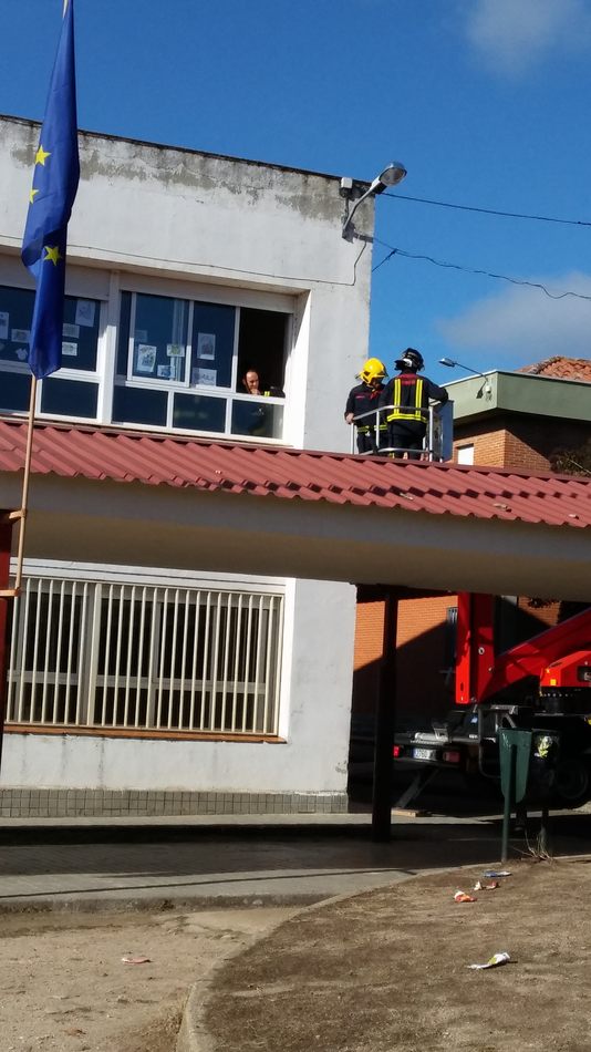 Los Bomberos de Lumbrales realizan un simulacro de incendio en el CEIP Liminares