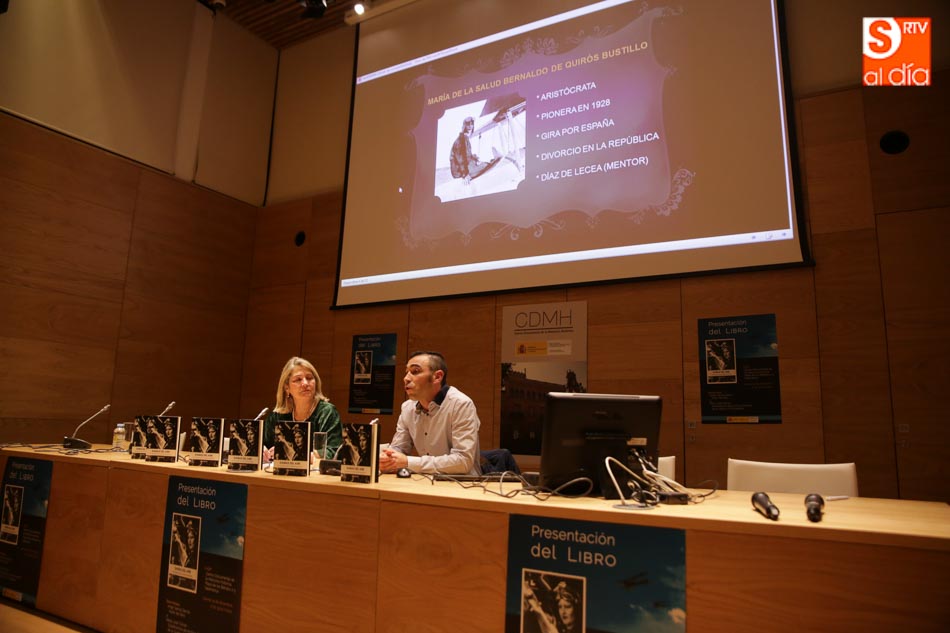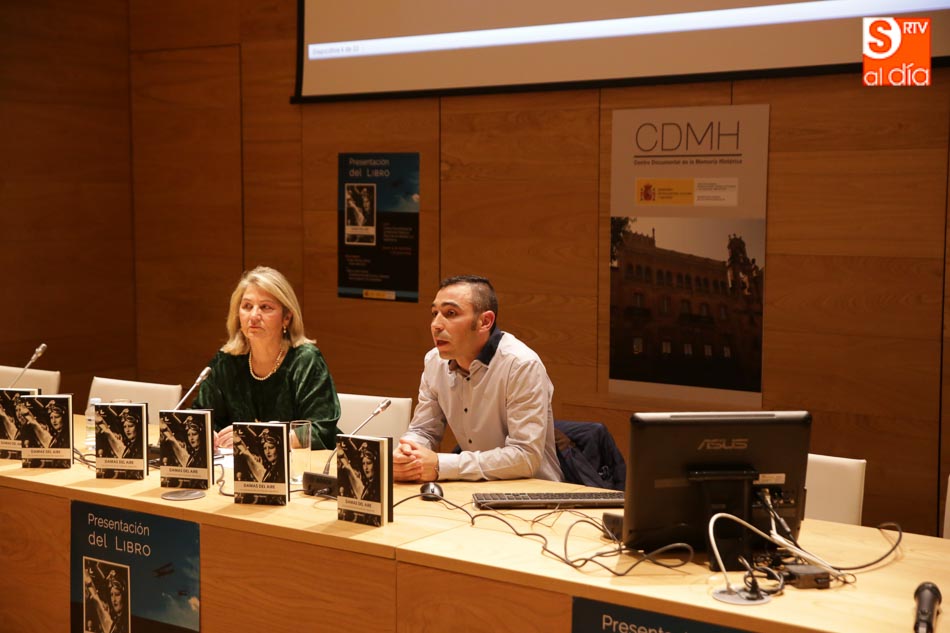 La sede del Centro Documental de la Memoria Histórica, situada en la plaza de los Bandos, acogió este jueves la presentación del libro 'Damas del aire: las pioneras de la aviación española', con la presencia de su autor, el salmantino Jorge García García, y de María José Turrión García, subdirectora del Archivo General de la Guerra Civil.