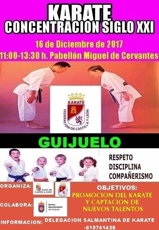 rate de Castilla y León. El objetivo de la jornada en la que está previsto participen 40 deportistas de entre 5 y 15 años es fomentar el kárate en edad escolar así como captar nuevos talentos. La sesión, que cuenta también con la colaboración del Ayuntamiento de Guijuelo, se desarrollará entre las 11,00 y las 13,30 horas.