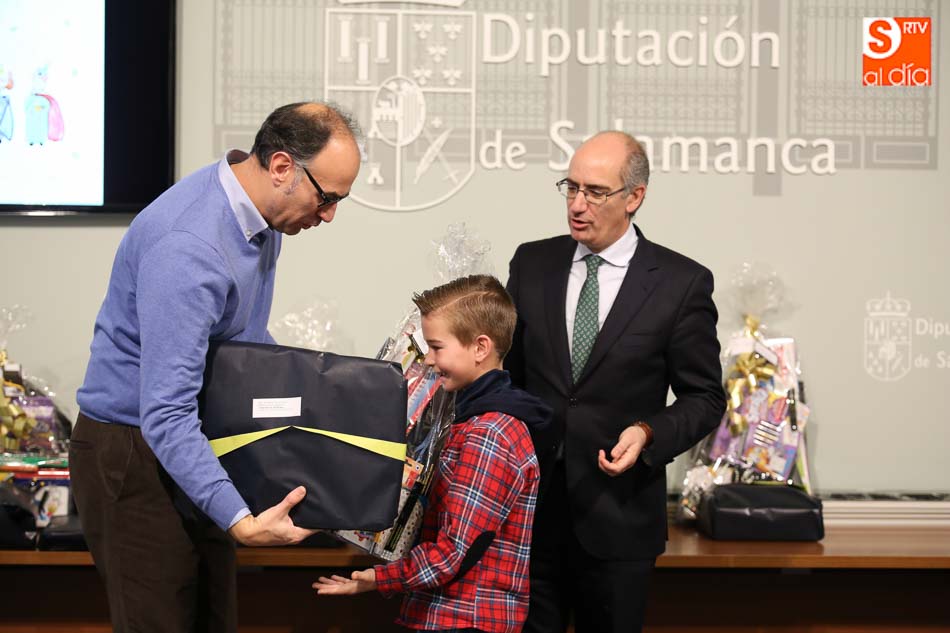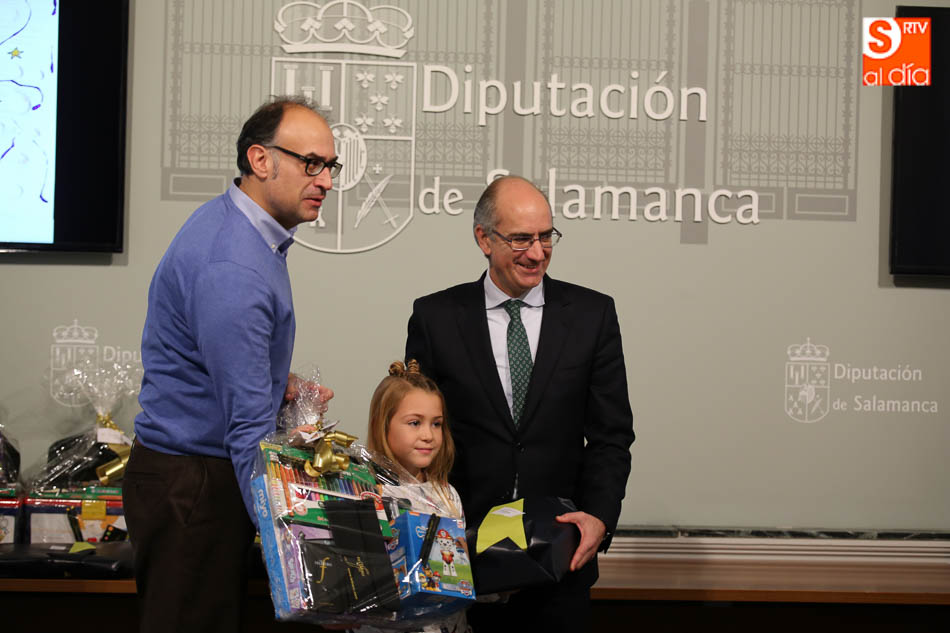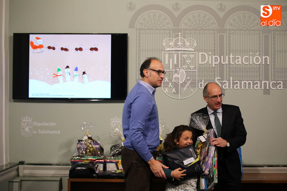 El presidente de la Diputación de Salamanca, Javier Iglesias, hizo entrega esta mañana de los premios a los escolares del Concurso Provincial de Dibujo Infantil de Postales Navideñas, que recibieron los galardones con especial entusiasmo, el mismo que pusieron a la hora de realizar sus obras.