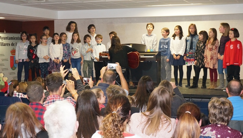 Este martes tuvo lugar el Concierto de Navidad de la Escuela Municipal de Música, en el Salón de Actos del Ayuntamiento de Villares de la Reina, que se llenó de público, para ver las grandes actuaciones que prepararon con gran entusiasmo los integrantes del coro polifónico y de la agrupación vocal en familia, y de los grupos de iniciación musical y lenguaje instrumental de piano, violín, flauta y guitarra.