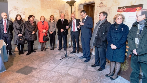 El rector, Ricardo Rivero, acompañado por su equipo de Gobierno ha mantenido un encuentro con el Personal de Administración y Servicios con motivo de las fiestas de Navidad celebrado en el claustro bajo del edificio de Escuelas Mayores de la Universidad.