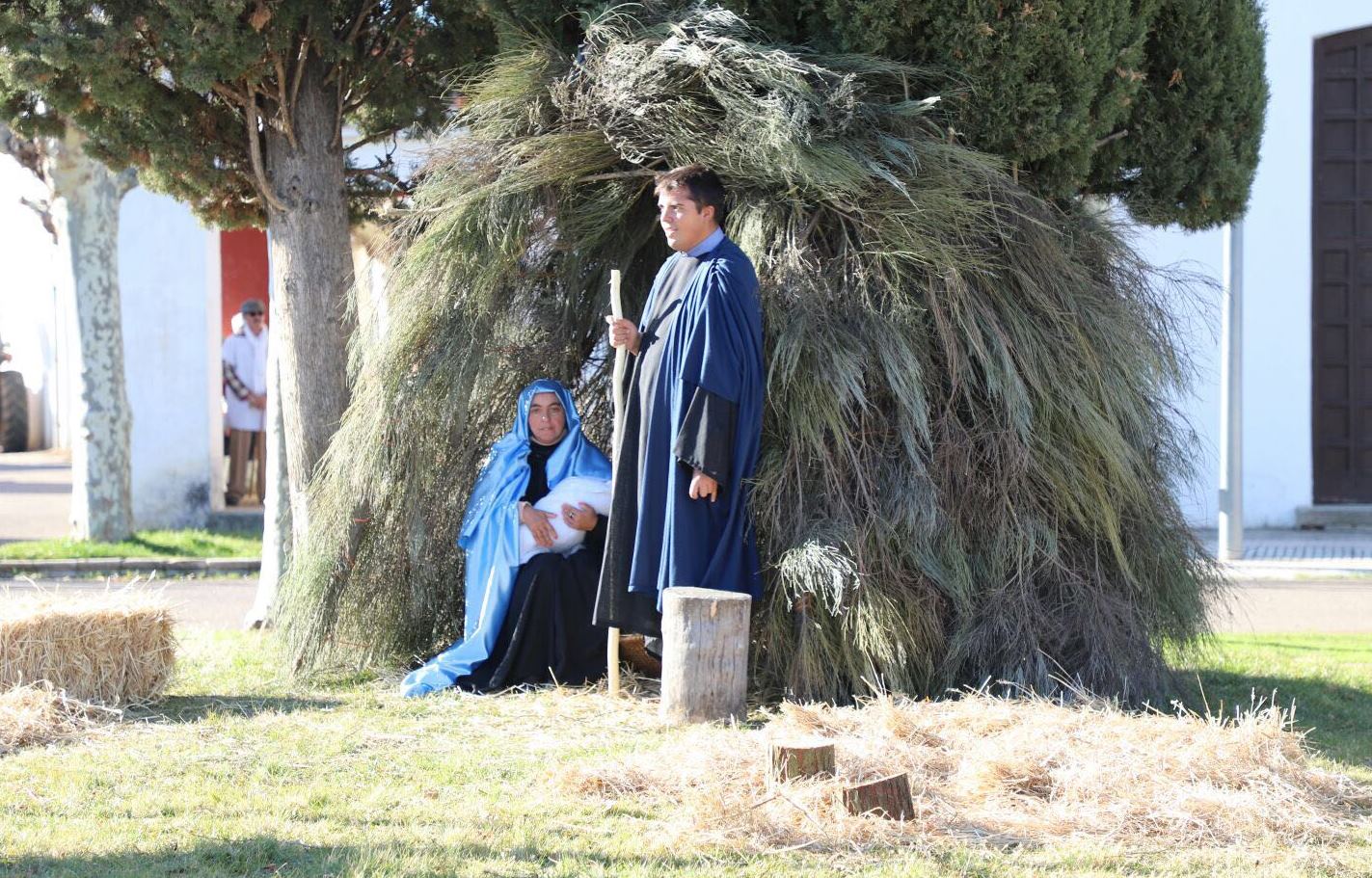 En una soleada pero fría mañana escenificaron el belén en la plaza principal de Sanjuanejo
