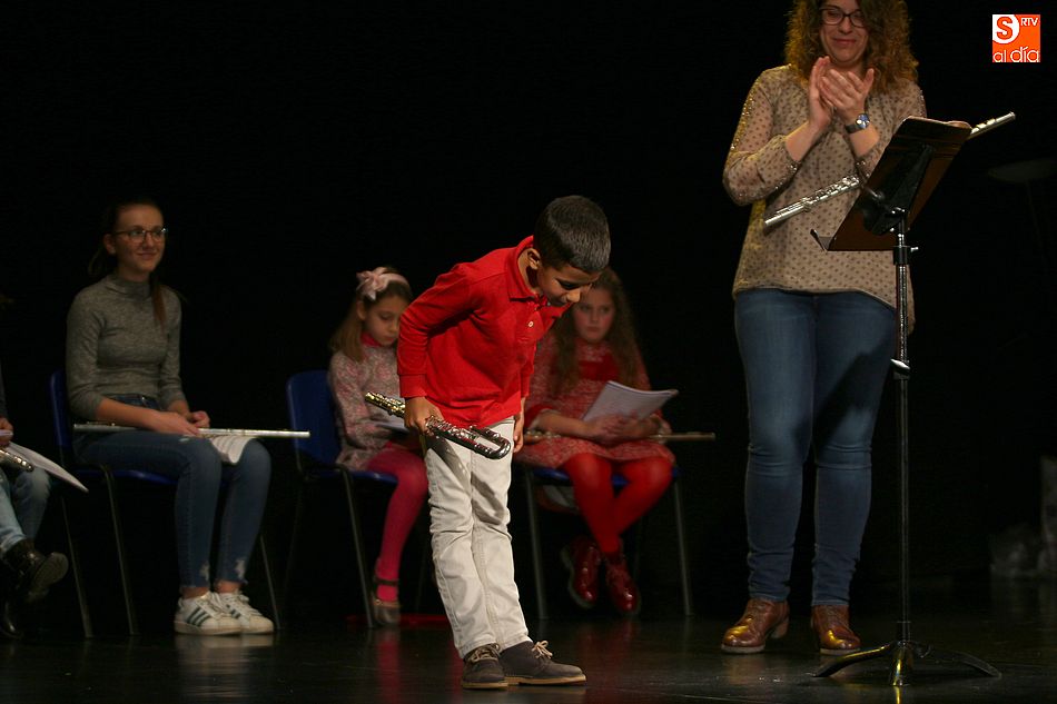 illa tras las tres jornadas previas en las que han actuado los demás miembros de la escuela. Piezas clásicas, modernas y villancicos fueron interpretadas primero por los clarinete y a continuación por las flautas, para acabar con la actuación de un pequeño conjunto.