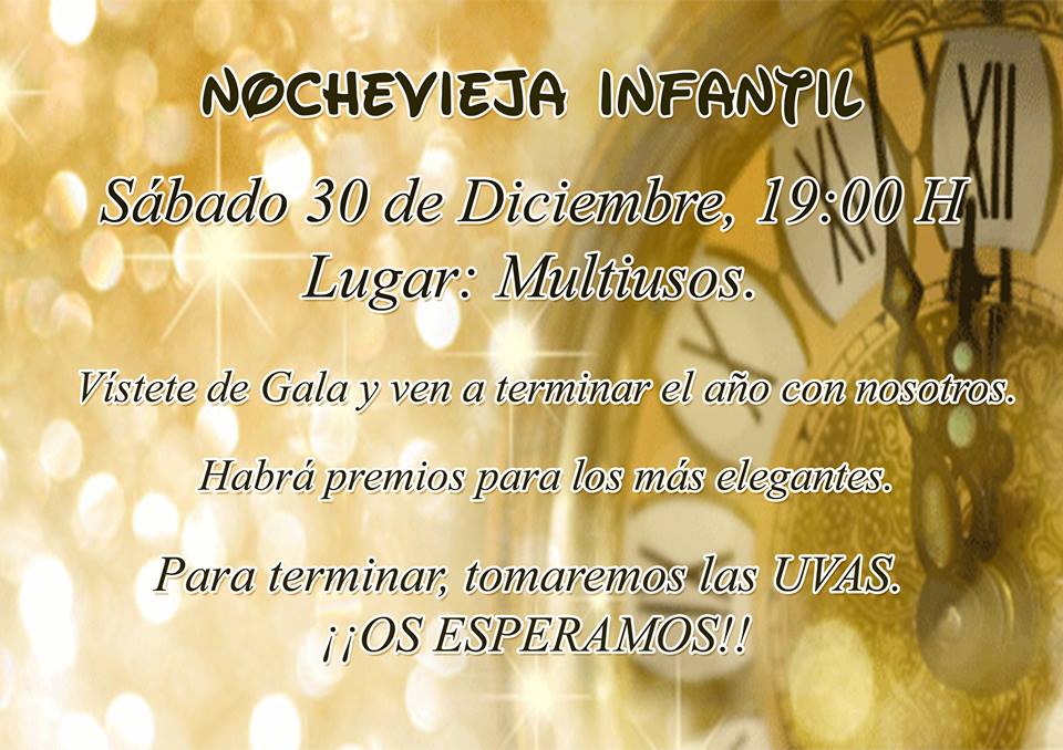 La fiesta de Nochevieja se iniciará a las 19 horas. Los niños despedirán el año tomándose las uvas. Incluso habrá premios para quienes acudan vestidos más elegantes.