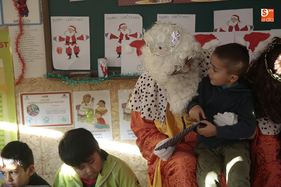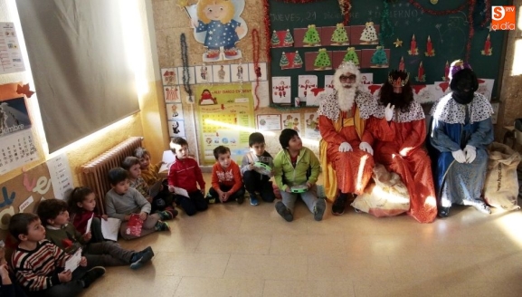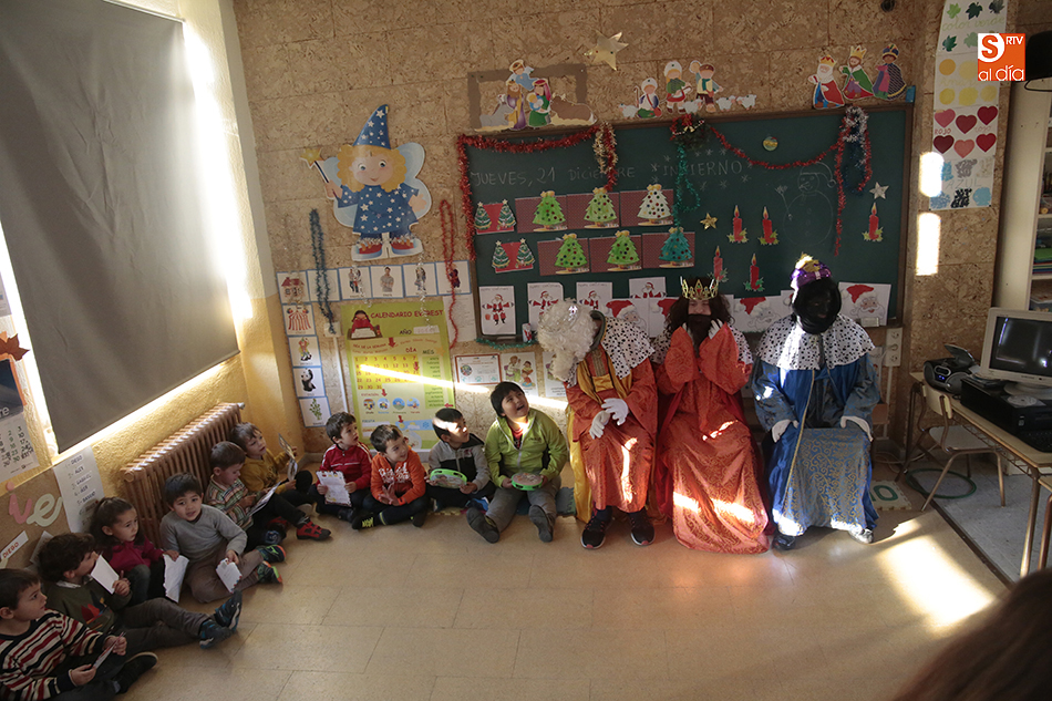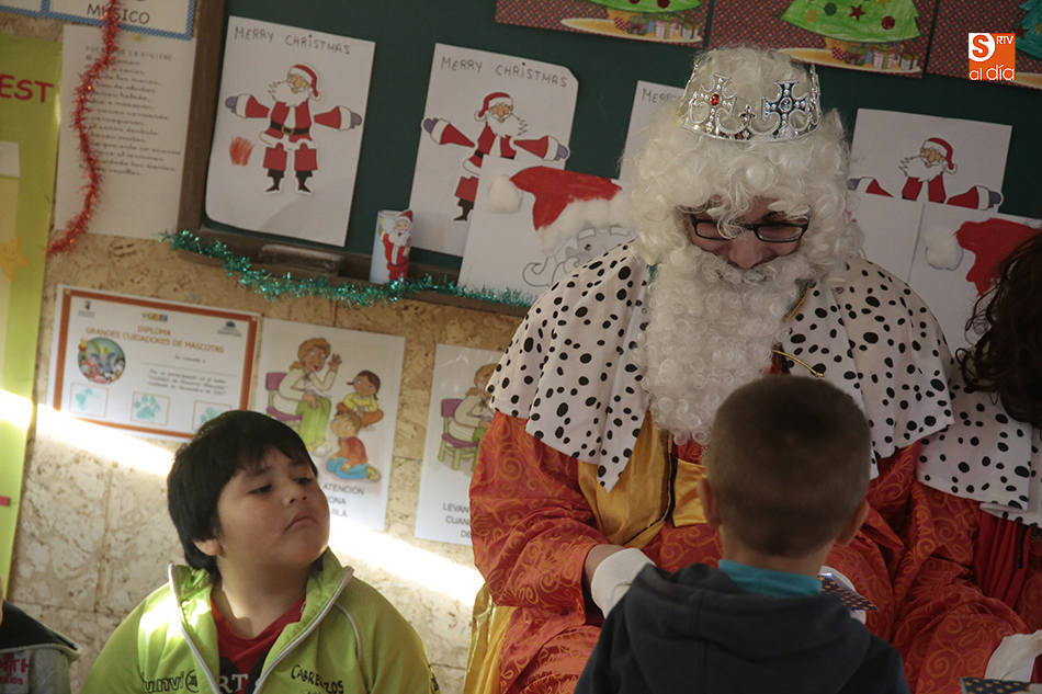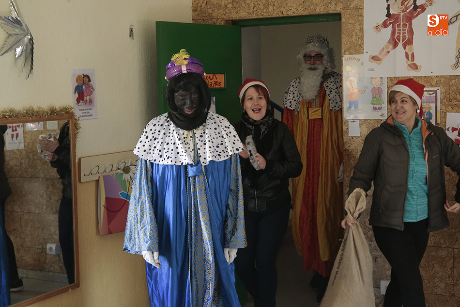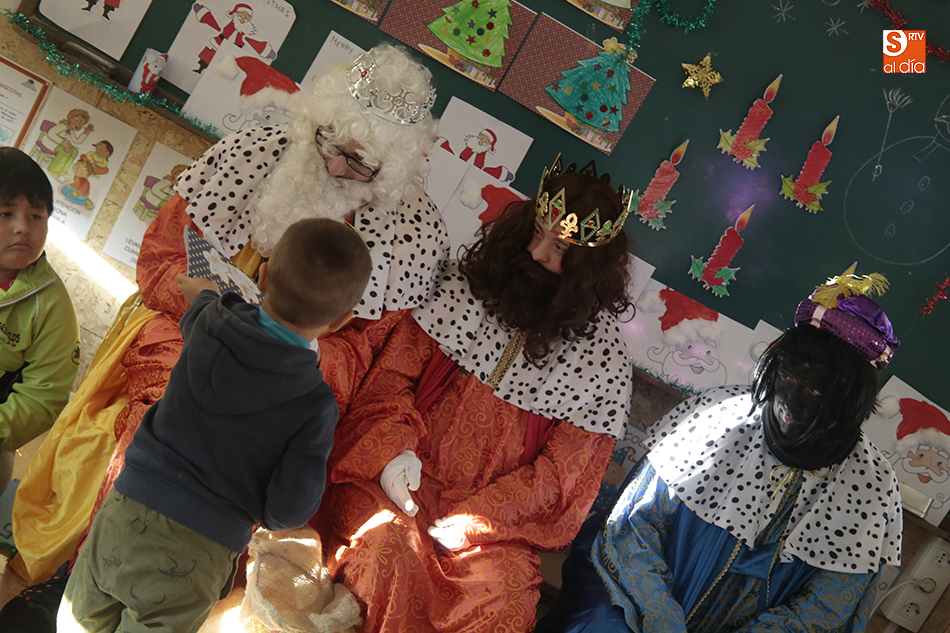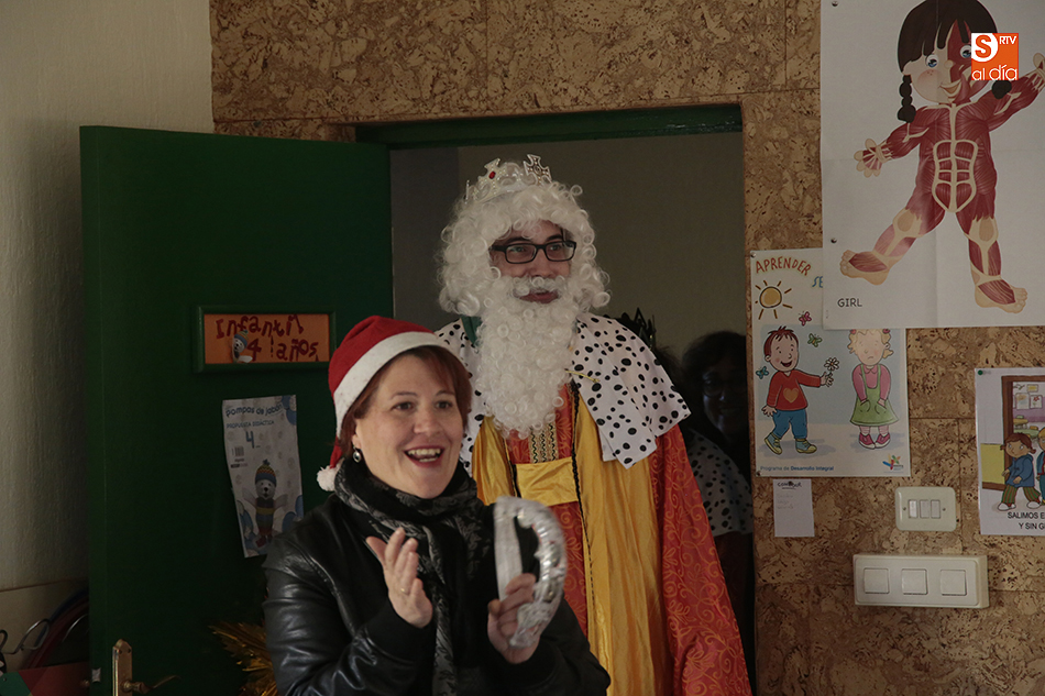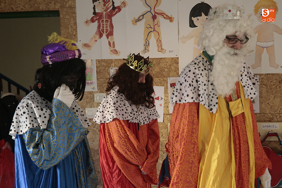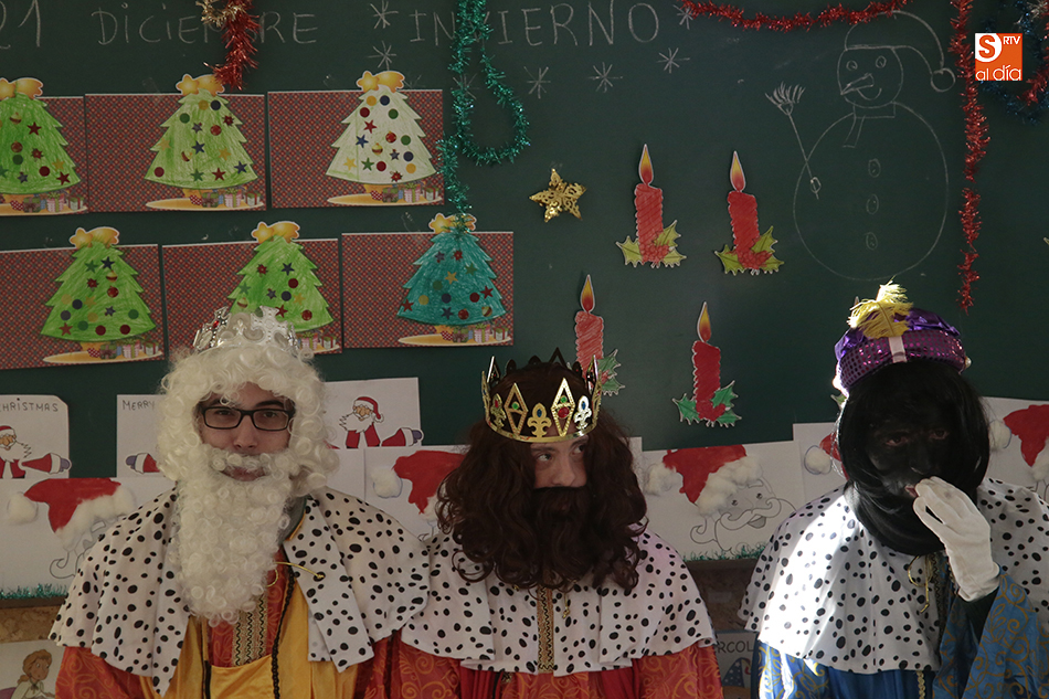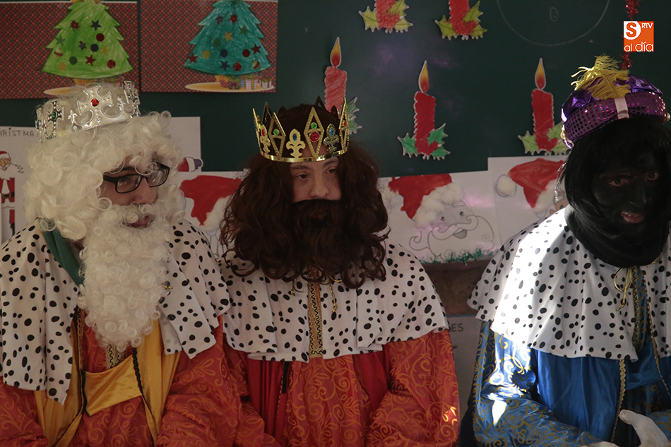 Gracias a una iniciativa de Insolamis, este jueves, tres personas con discapacidad intelectual han representado a los Reyes Magos, en una entrañable visita al colegio público Caja de Ahorros.
