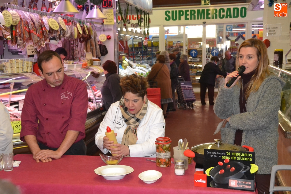 El Mercado de Abastos de Ciudad Rodrigo vivió en la mañana del jueves la última sesión por este 2017 del programa Cocinamos en el Mercado que está llevando a cabo la Concejalía de Mercados del Ayuntamiento mirobrigense en colaboración con la chef Leticia Martín Palos, del Restaurante Estoril, y los comerciantes del propio recinto.