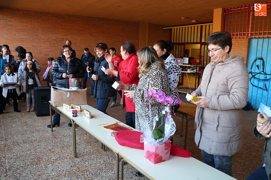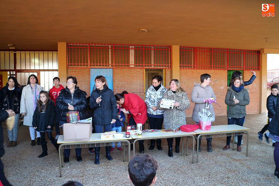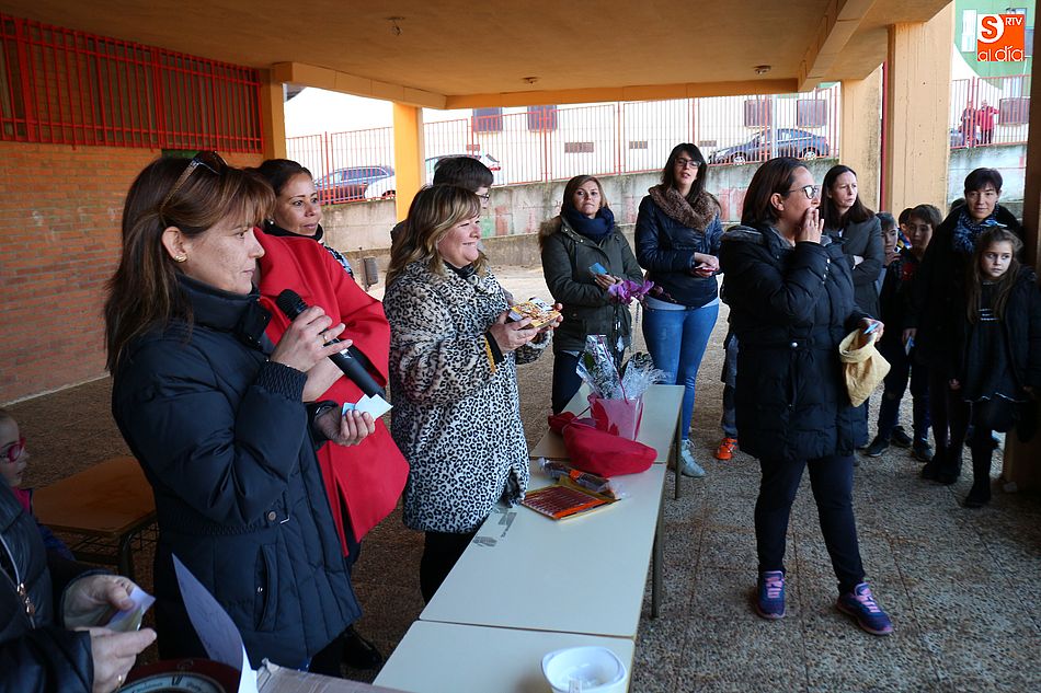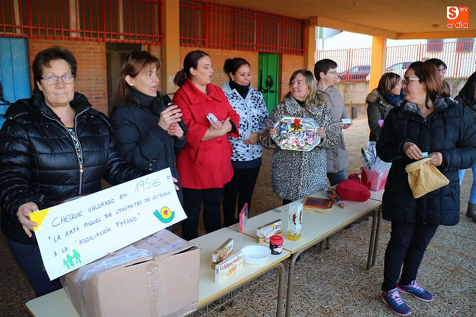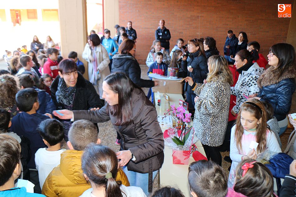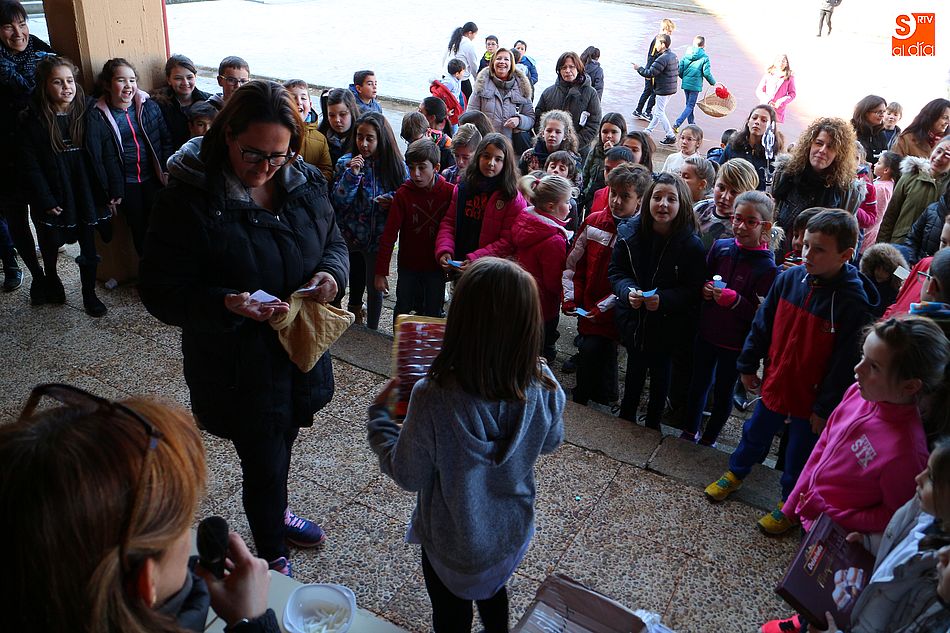 acto solidario, el AMPA decidió sortear todos los artículos de la cesta entre los alumnos del centro, vendiendo papeletas a un euro. Todos los pequeños participaron en el divertido sorteo, consiguiéndose 195 euros que serán destinados a Pyfano, la Asociación niños afectados por enfermedades oncológicas, al igual que todo el beneficio obtenido por el concurso municipal de coronas.