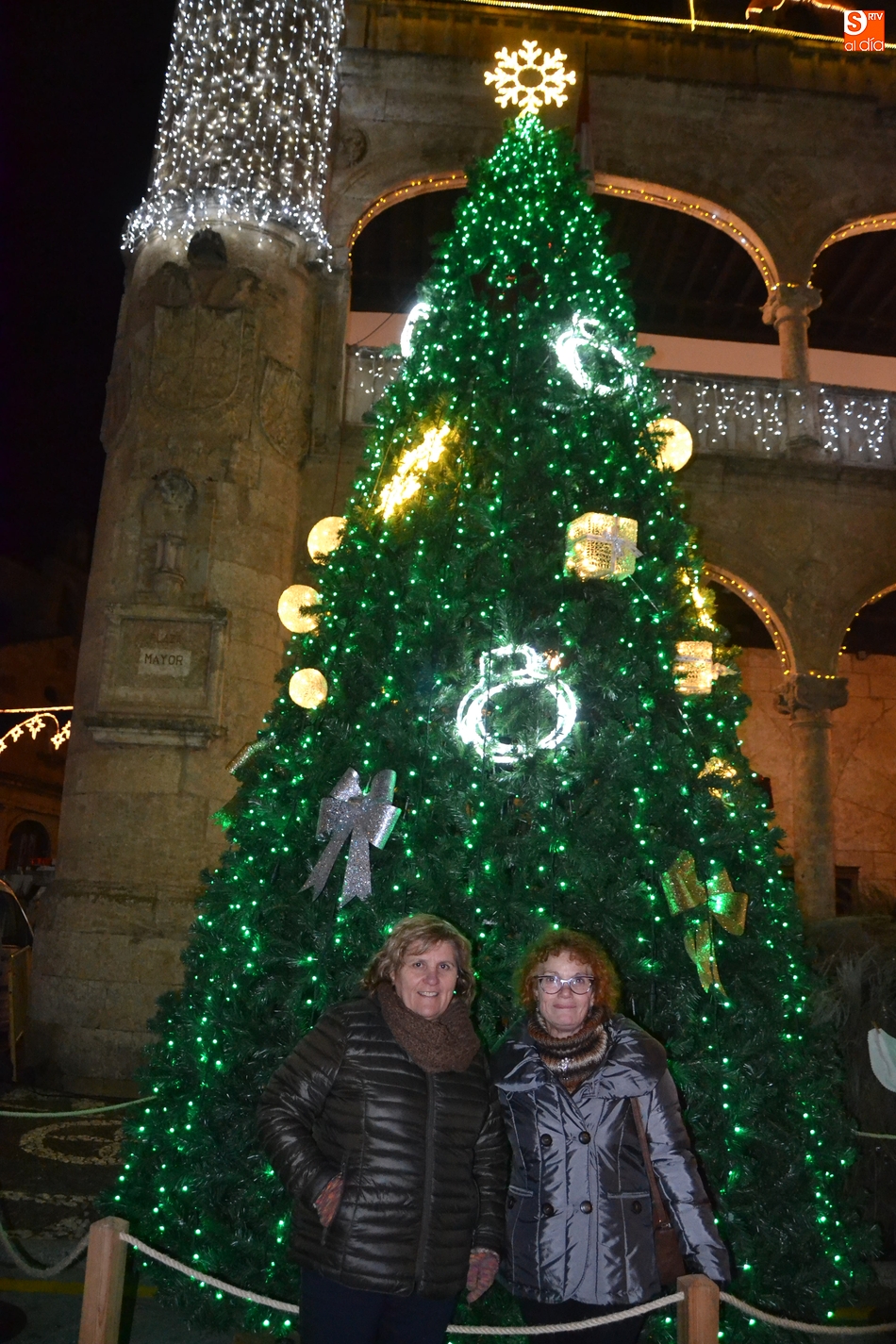 En este regreso al ágora, el belén estuvo situado como siempre que se ha hecho allí a los pies de la Casa Consistorial, contándose con la novedad -respecto al momento en que se dejó de hacer en la Plaza- del gran árbol iluminado que Ciudad Rodrigo estrenó las pasadas navidades, lo que le dio un marco diferente a la celebración de este año.